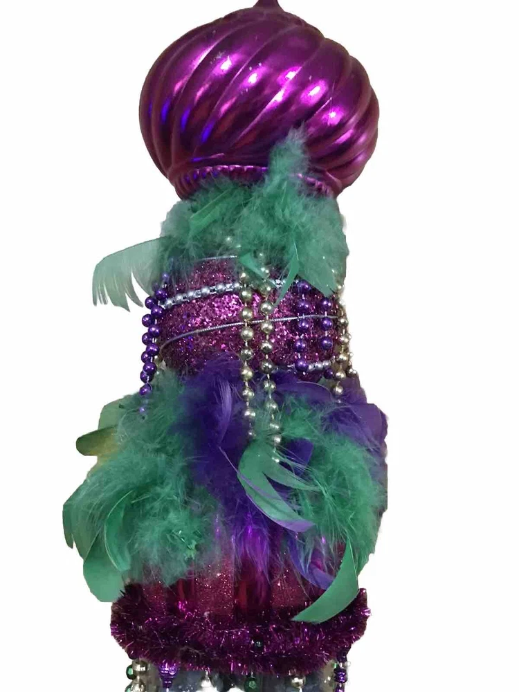 This Mardi Gras Table Top Decor is a handmade decoration perfect for adding a festive touch to your home during the Mardi Gras occasion. Featuring a vibrant multicolor design, this decor piece is made from a combination of glass and plastic materials. Ideal for setting the mood during Mardi Gras celebrations, this unique and colorful decor item will surely stand out on any tabletop or surface.