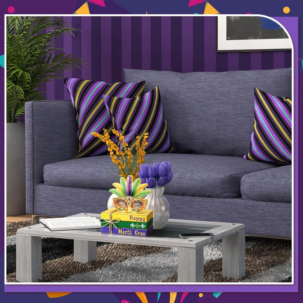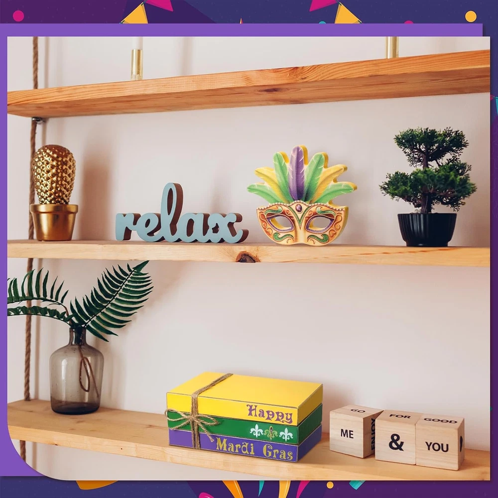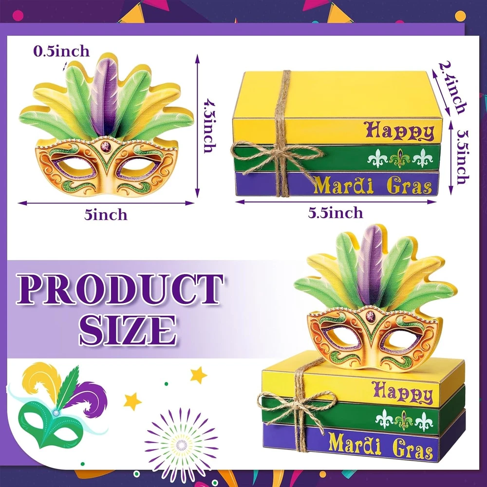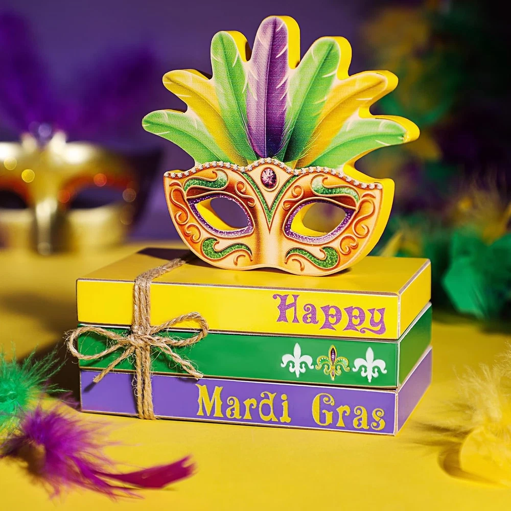 Mardi Gras Tiered Tray Decor Mask Book Stack Decor Green Yellow Purple Farmhouse