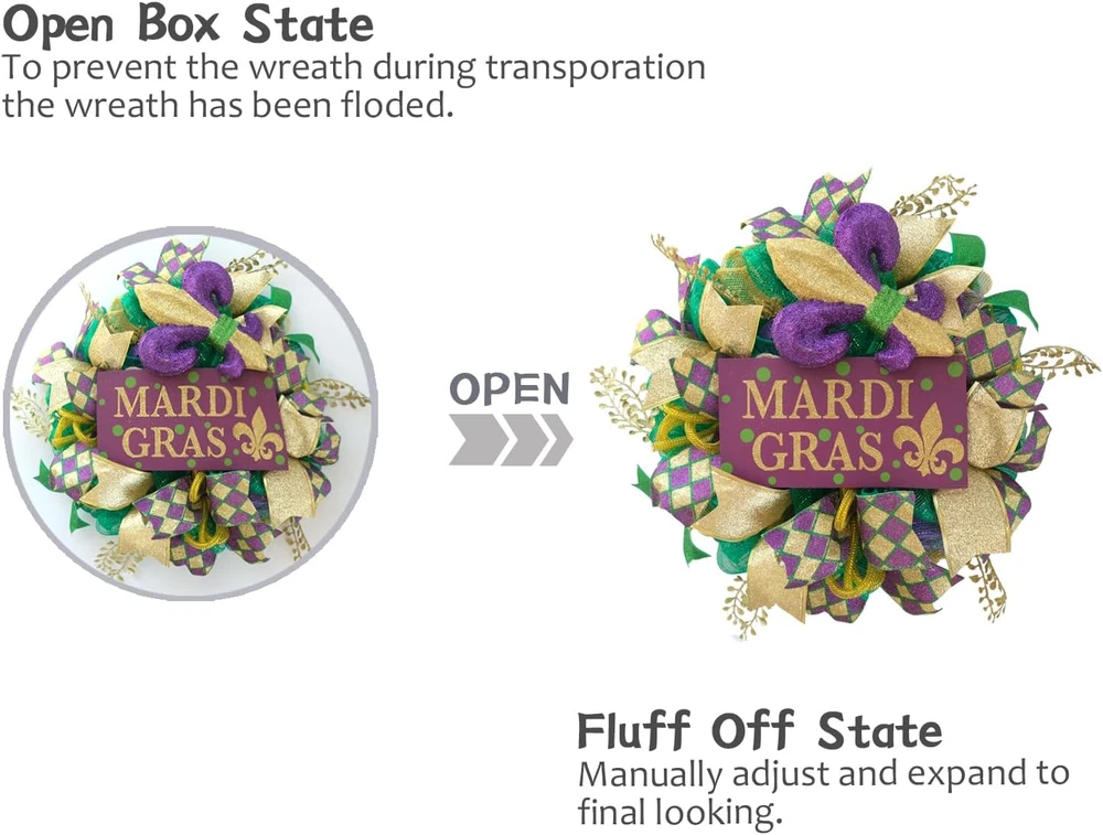Store New Arrivals Add to Favorite View Feedback Contact Fast deliveries to the customer's home Quality customer service John Make the customers happy! Mardi Gras Wreaths for Front Door, 16" Artificial Glitter Bows Gold Leaves Mesh Wreath with Mardi GPAS Sign for Front Door Indoor Outdoor Decorations Description 【Mardi Gras Wreath】The Mardi Gras Wreath Decoration features gold, green, and purple ornaments and gold tinsel; with a variety of sizes.The Mardi Gras Wreath create a rich and diverse texture and making it an eye catching decorative piece for your celebrations. 【Durable & Reusable】Each wreath is handmade with great attention to detail and craftsmanship and has a design quality, sturdy and durable, can be used for a long time. 【Easy to Use】This Mardi Gras wreath can be easily mounted and secured with a string included in the package; Whether you want to hang it on your doors, entryway, fireplace, or in your living room, the wreath provides you with a simple installation process. 【Various Applications】 this Mardi Gras wreath is suitable for diverse decorations; thanks to its ideal size and festive color palette, it can be applied to adorn any part of your home including your front door, back door, porch, entryway, fireplace, and living room, adding festive cheer. 【Best service】It is our greatest desire and pleasure to offer you our Full Presence and Best Support. If you have any questions about our product. Please feel free to contact our customer service, we will reply within 24 hours. Product Description Mardi Gras Mesh Wreath Add to Cart Add to Cart Add to Cart Add to Cart Add to Cart Add to Cart Add to Cart Customer Reviews 4.0 out of 5 stars 1 4.0 out of 5 stars 1 — — — — 4.5 out of 5 stars 42 Price $38.99 $ 38 . 99 $26.99 $ 26 . 99 $35.99 $ 35 . 99 $16.99 $ 16 . 99 $16.99 $ 16 . 99 $12.99 $ 12 . 99 $29.99 $ 29 . 99 SIZE 18" 16" 24" wooden board is 11.6 inches wooden board is 11.6 inches wooden board is 11.6 inches 18" Color Yellow&Green&Purple Yellow&Green&Purple Yellow&Green&Purple Yellow&Green&Purple Yellow&Green&Purple Yellow&Green&Purple Gold Material Mesh,Fabric Mesh,Fabric Plastic,Fabric,Paper,Wood Wood, Plastic,Fabric Wood, Plastic,Fabric Wood, Plastic,Fabric Plastic,Fabric,Paper Season Mardi Gras Mardi Gras Mardi Gras Mardi Gras Mardi Gras Mardi Gras Winter Mounting Type Door+Wall Door+Wall Door+Wall Door+Wall Door+Wall Door+Wall Door+Wall Item Weight 1.34 pounds Shape Round Size 16" Product Dimensions 4"D x 16"W x 16"H ABOUT US We offer the best prices around on high quality products. Our E-store includes media such as books, movies, music and games while offering electronics, toys, sporting apparel, clothing, tools, general home, garden items and more. SHIPPING We are always working hard to ensure your package arrives as soon as possible. Please understand that some factors like weather, high postal traffic, and the performance of shipping companies are outside of our control. We offer free shipping to the lower 48 states and ship within 2 business days of payment, usually sooner. We do not accept P.O. Boxes. Please provide a physical address. For shipping outside of the continental USA, we only use eBay's Global Shipping Program. The item is shipped to KY and then sent to the rest of the world. International customers are responsible for all duties and taxes. Continue to 'check out' to calculate costs for shipping the item to your country. Messages regarding eBay's Global Shipping Program MUST be directed at eBay EXCLUSIVELY. RETURNS We offer a 30-Day Return Policy on items in which you are not completely satisfied with. You have the option of a full-refund or an exchange of the item. No returns are available on items shipped outside of the USA PAYMENT We accept PayPal. CONTACT US This page content is yet to come Please ad us to your favorite seller and visit again later Thank You CUSTOMER SATISFACTION We try our very best to make sure every customer is completely satisfied. If there's a problem, message us! We're happy to help. WE ACCEPT