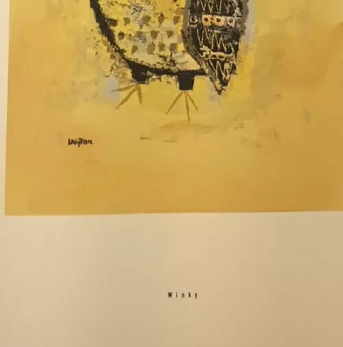 beautiful original vintage hand painted Lithographs from the 1950's. "winky". Margaret Layton knows Gold & yellow hues make for a suddle yet elegant addition to any decor.