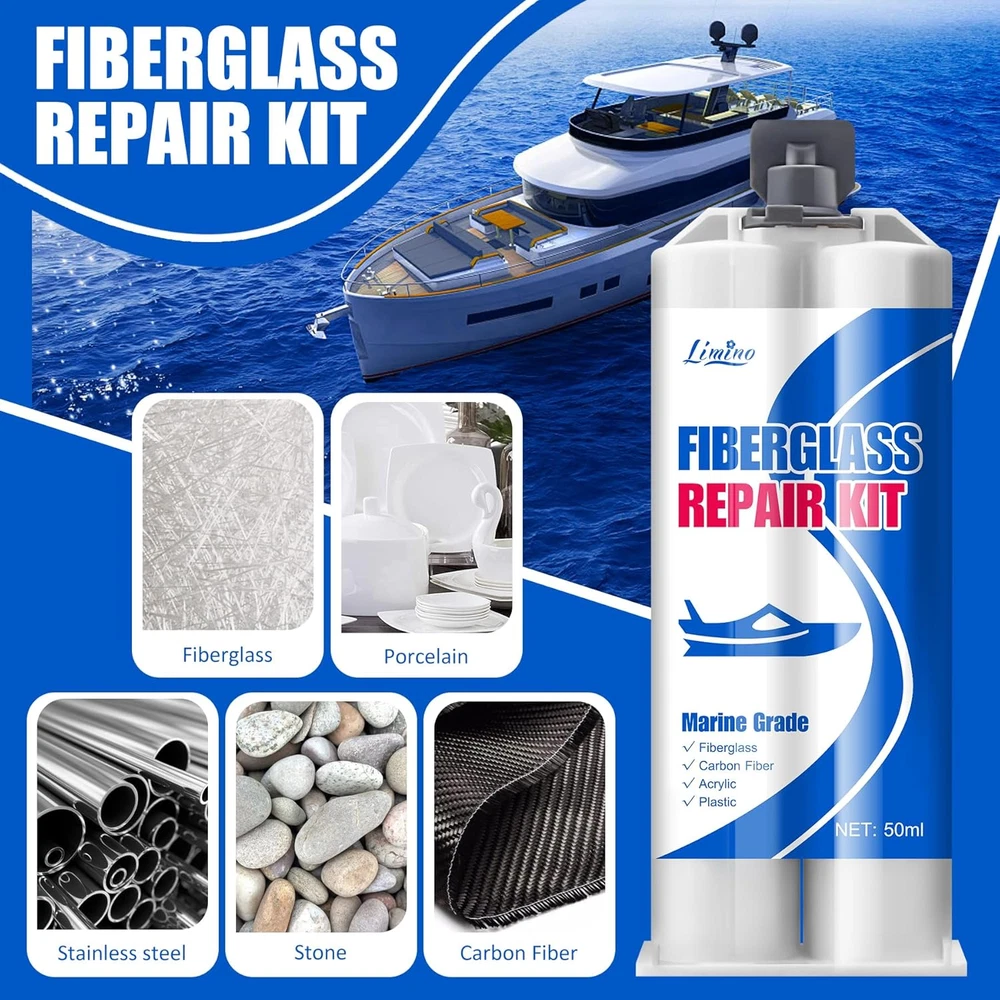 SPECIALIZED FIBERGRASS KIT - Our marine fiberglass repair kit has mega adhesion to effectively repair fiberglass boat damage on horizontal and vertical surfaces (Above The Waterline), perfectly repairing scratches, cracks and holes on the boat. Excellent UV resistance and waterproof protection, specially designed to cope with exposure to sunlight and humid environments, making it suitable for various types of boat repair tasks such as motorboats, surfing boats, kayaks, yachts, sailboats, canoes. VARIETY OF APPLICATIONS - The gelcoat repair kit has good compatibility with surface damage repair of fiberglass, carbon fiber, acrylic, plastic, porcelain, stainless steel, stone, aluminum and other materials. Not even for boat, if you encounter the above materials you need to repair in your life, use this product to started doing a bunch of small repairs around the house immediately. DURABLE AND LONG-LASTING QUALITY - We use two-component fiberglass filler for detachable open packaging, ensuring the activity of the product during storage and its reusability. With outstanding mega adhesion, it can ensure the perfect fit between the adhesive and the repaired wound, and maintain a steel like hardness and toughness for a long time. It is a perfect marine fiber glass simple repair kit. SIMPLY TO USE - The marine fiberglass repair kit equipped with complete accessories, we use the push rod to squeeze out A and B simultaneously into the silicone cup. After 30s mixing, start repairing and applying. The operational time is about 20 minutes (25℃). Fully curing time is 24 hours. When it solidifies, its hardness is as hard as steel. So we equipped sandpaper to polish the surface for better fusion effect. ECONOMICAL AND PRACTICAL - The same expenditure can achieve greater capacity without sacrificing quality. If you are not satisfied with your purchase or if it arrives damaged, don't hesitate to reach out to us. Click 'Add to Cart' now and enjoy the journey of perfect repair experience. Product Description