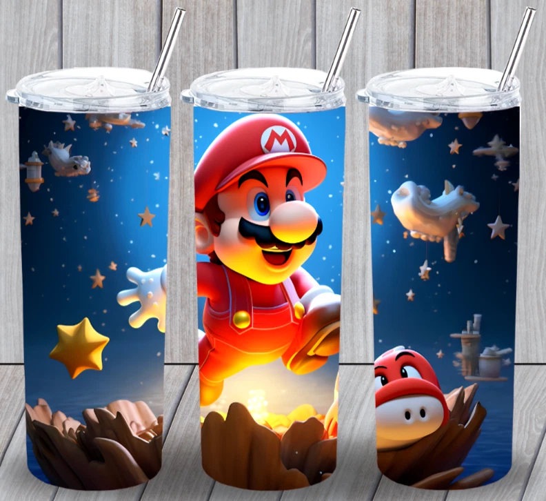 Personalize: Yes Number of Items in Set: One Tumbler. One Lid. One Straw. Capacity: 20oz Keeps Hot For: 6 hrs Care Instructions: Handwash the cup with soap; lids and straws are dishwasher-safe. Theme: Cartoons, TV & Movie Characters, Love & Hearts Character: Mario Country/Region of Manufacture: United States Item Height: 9 in Department: Girls, Kids, Adults Model: 1 Item Weight: 0.75 lb Keeps Cold For: 12 hrs Manufacturer Warranty: No Warranty Offered Character Family: Mario Item Width: 3 in Lid Type: Slide Lock Personalization Instructions: Add a name to your tumbler here. Color: Multicolor Beverage Type: Hot or Cold Features: Decorated, Insulated, Spill Proof, Suitable for Hot Beverages, With Lid, With Straw Material: BPA-Free Plastic, Metal, Plastic, Silicone, Stainless Steel, Steel Type: Tumbler Brand: Unbranded Custom Bundle: Yes