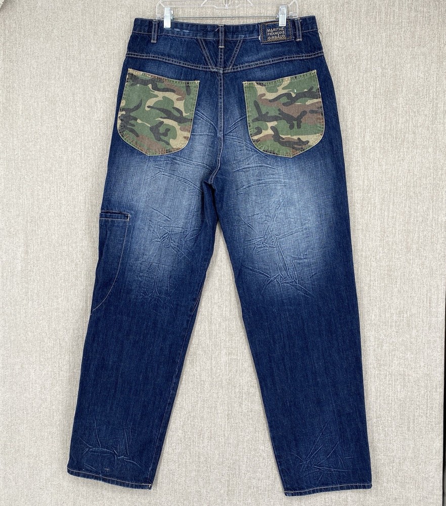 Marithe Francois Girbaud Mens 34x33 Relaxed Baggy Camo Y2K Denim Jeans