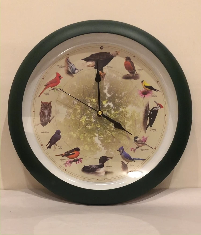Mark Feldstein Limited Edition 20th Anniversary Singing Bird Wall Clock 13 Inch in Matte Green NEW OPEN BOX ITEM - CLOCK HAS BEEN TESTED AND SOUNDS GREAT! SEE VIDEO Requires 3 AA batteries (not included)