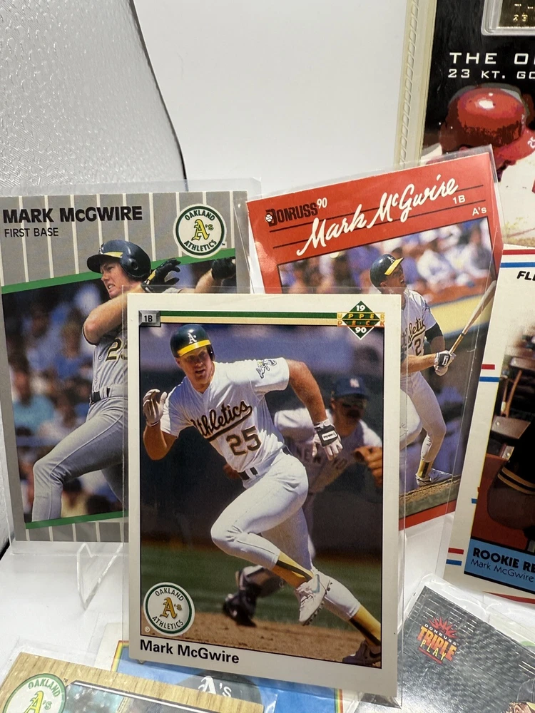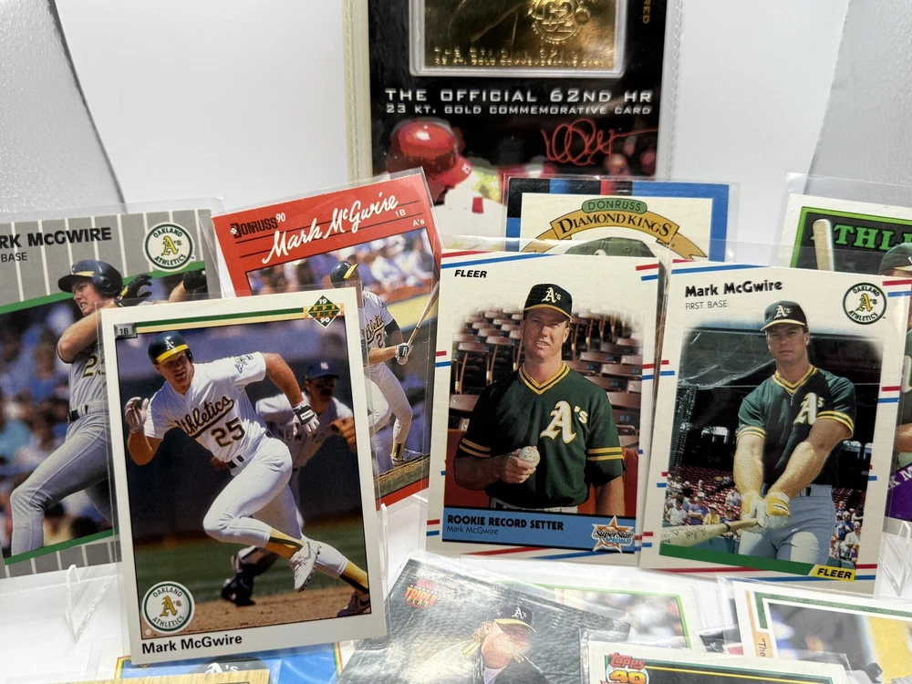⚾ Own a Piece of Baseball History! ⚾ This amazing Mark McGwire collectible lot is a must-have for any baseball fan or card collector. Featuring a stunning 23kt gold commemorative card and a variety of vintage baseball cards, this set captures the legendary career of one of MLB’s greatest sluggers. Included in This Lot: ✨ Official 23kt Gold Card – Limited Edition commemorating McGwire's record-breaking 62nd home run. Individually numbered and encased in original packaging. ✨ Assorted Baseball Cards – A mix of iconic Mark McGwire cards from brands like Topps, Fleer, Donruss, and Upper Deck. Includes rookie cards, highlights, and team memorabilia. 💡 Highlights: Great for collectors or as a gift for a sports enthusiast! A fantastic way to celebrate McGwire's legendary career with the Oakland Athletics.