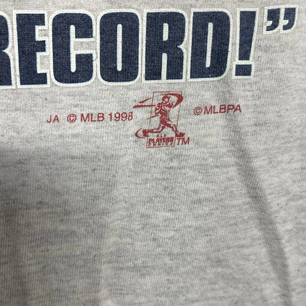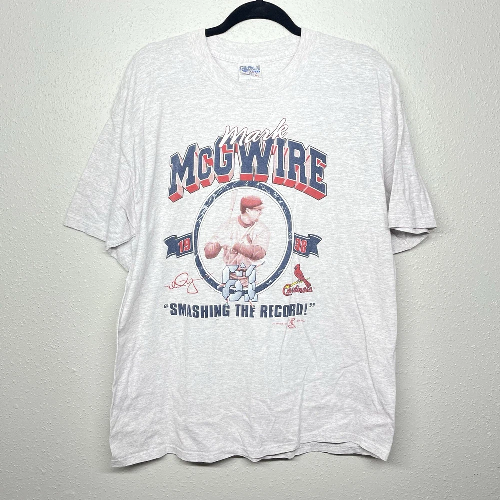 Mark McGwire “Smashing The Record” 1998 Men’s XL T Shirt St Louis Cardinals (Small Hole On Front Of Shirt Shown On Image) Shipped with USPS Ground Advantage.