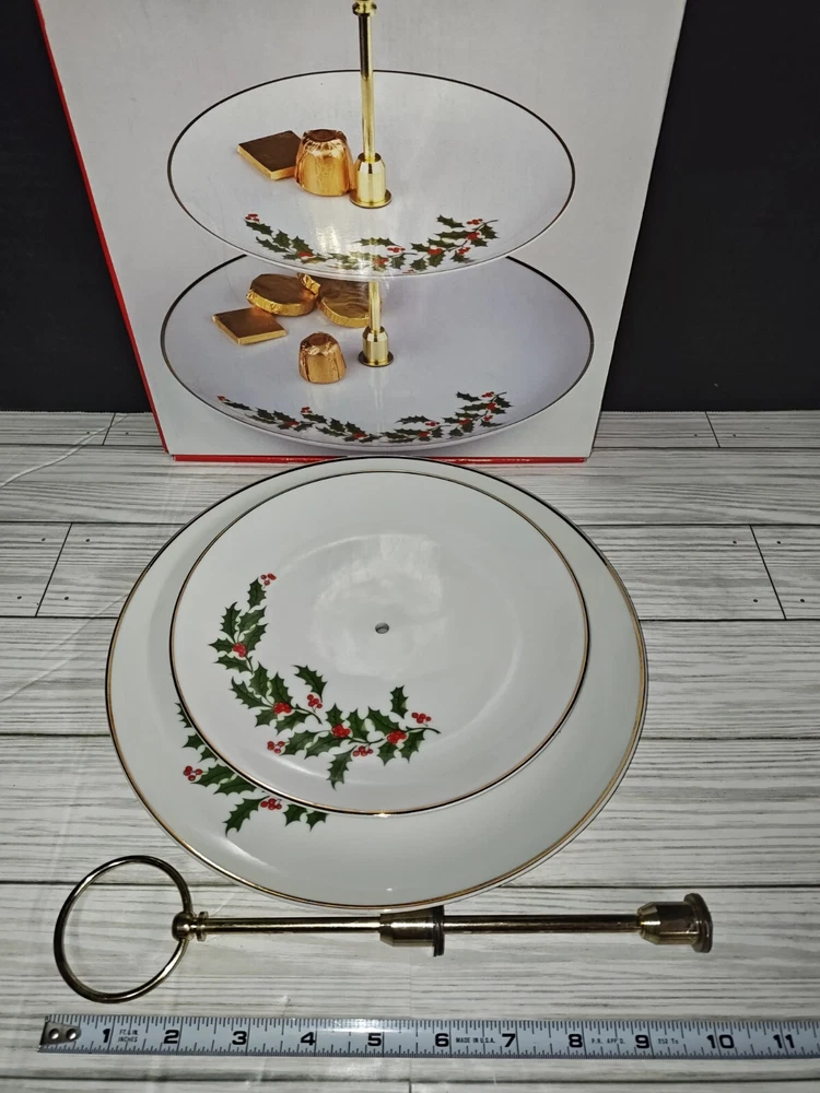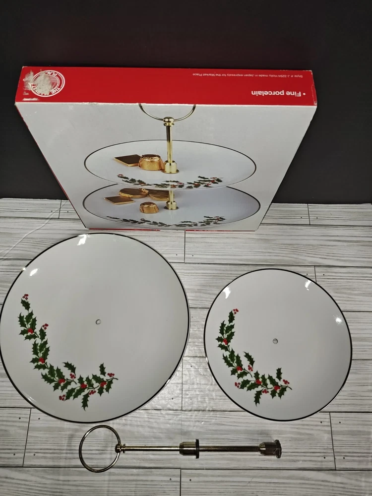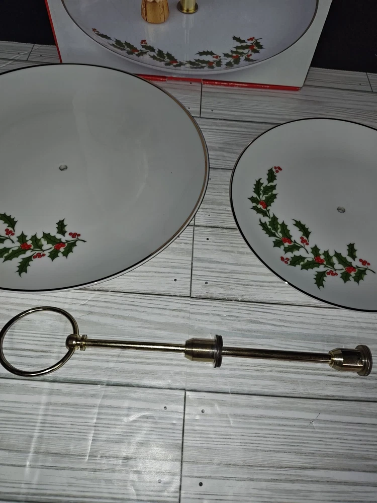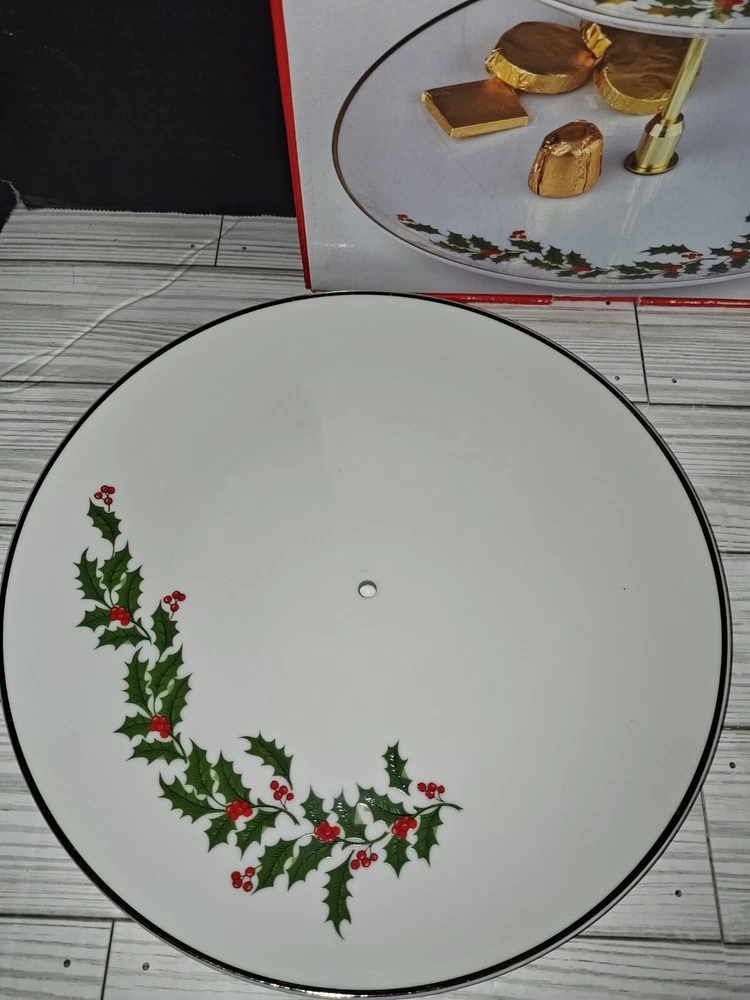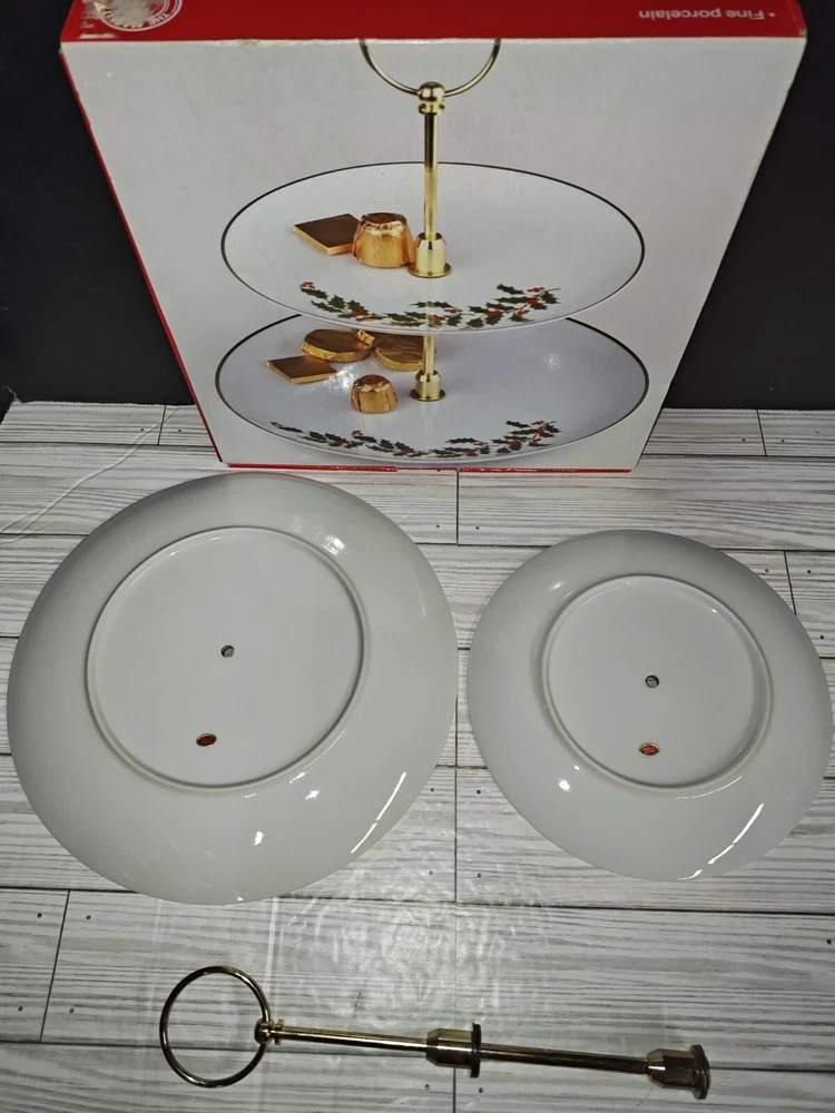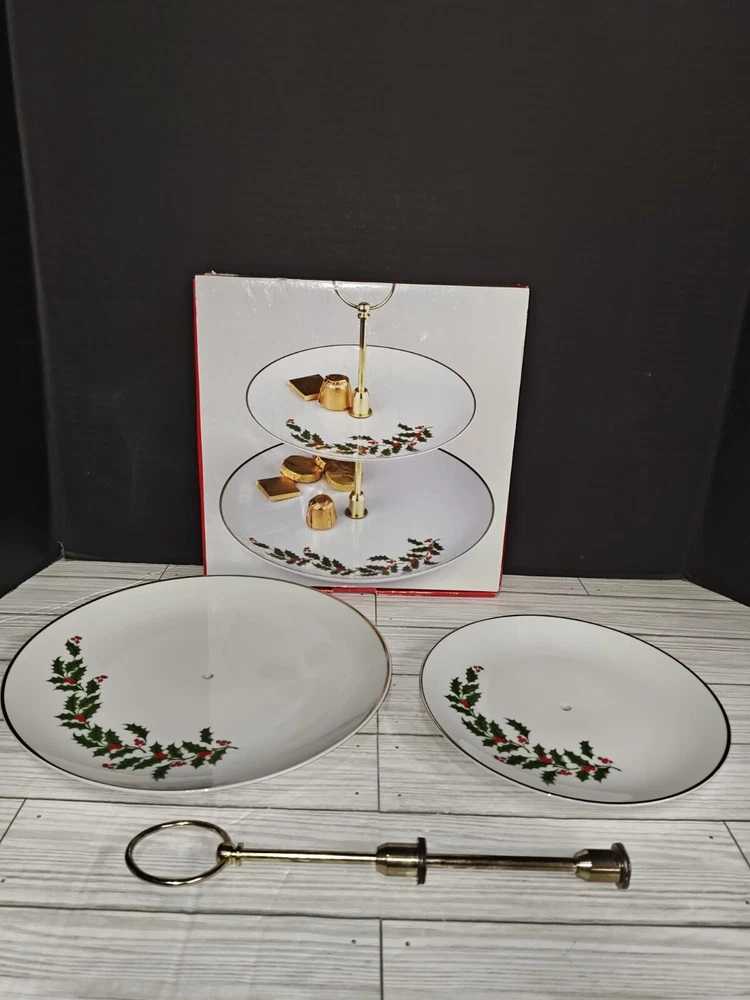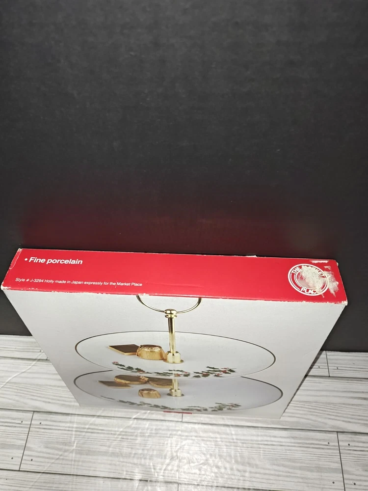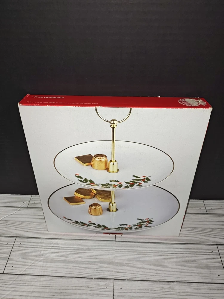 Marketplace 2-Tier Serving Tray Holly Berry Fine Porcelain Winter Holiday Series. Packaging has some wear from age and storage. See pictures. Sold as is.