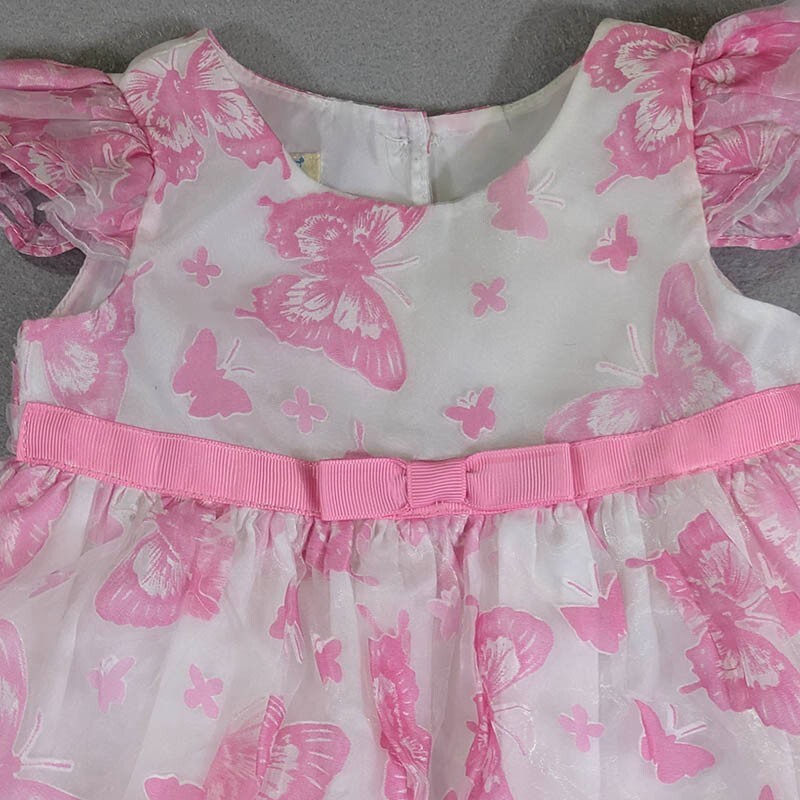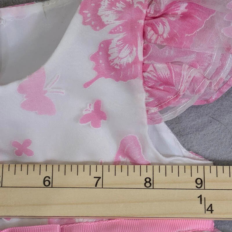 Marmellata Girls Toddler Dress Easter Pink & White Butterflies Flutter Sleeve Babydoll Netting 6 months Could be used as Doll Clothes 100% Polyester Machine Wash Tumble Dry Pit to Pit 9" Length14" All measurements are approximate and done with garment laid flat Measurements in Photos No tears, stains or holes, very good pre-owned condition Fast Shipping!