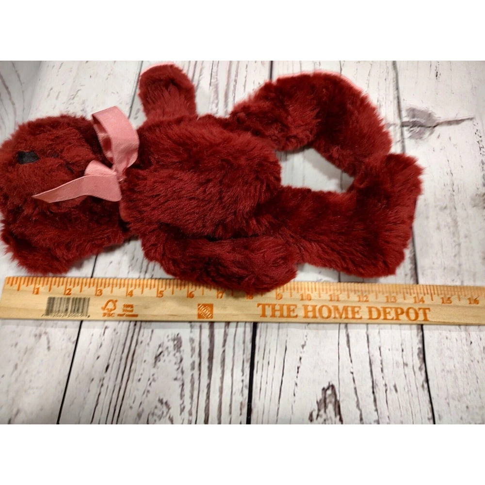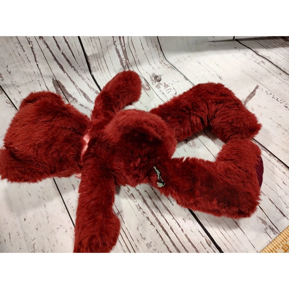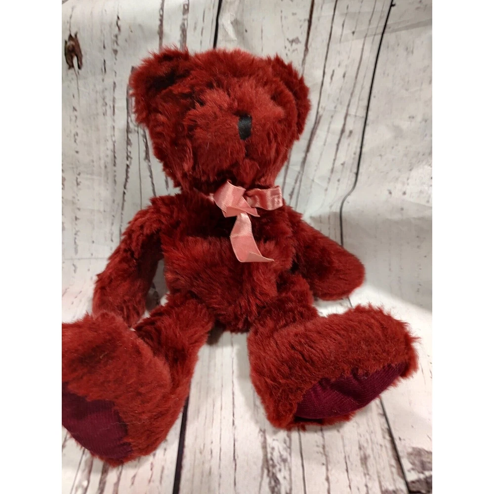 Maroon red Valentine's Day stuffed teddy bear with bow stuffed animal plush in good condition.