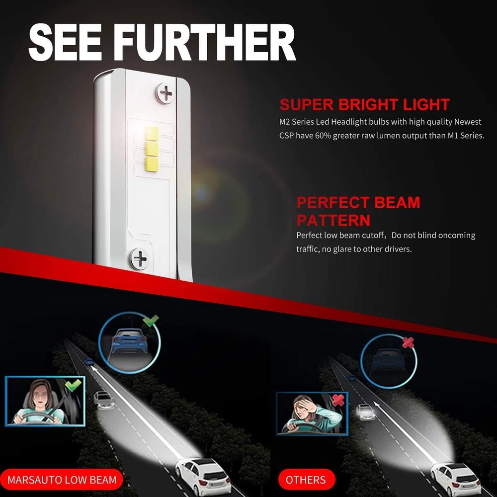 Product description Marsauto M2 9006 hb4 led headlight bulbs high and low beam Features: 2.5 times brighter than stock halogen bulbs Plug and play connection No radio interference 360-degrees illumination Over 50,000 hours lifespan Note: For some vehicles, the professional CANbus decoder is needed if there occur flicker issues or error messages. If your headlights and DRL (daytime running light) share one bulb, the DRL may flicker due to the difference voltage. Specifications: Model: 9006 hb4 Voltage: 8v to 24v Power: 25w per bulb LED type: csp Color temp: 6000k cool white Shell material: aluminum alloy shell Package includes: 2 x Marsauto 9006 hb4 led headlight bulbs 1 x Instruction manual How to install 1. loosen the screws, clips or retaining springs that hold the headlight in place. 2.Disconnect the wiring on the headlight. 3.Remove the headlight from the car and replace it with a new one. 4.Install the new headlight . 5. secure the new headlight in place and make sure the screw, clip or retaining spring is sealed. 6. reconnect the wiring unplugged from the headlight. 7. put back the grille and other removed parts. Seal them in place. 8.Test the new headlight. (Note: We strongly recommend headlight by a professional installer) Payment Shipping Return Policy Contact Us Important Points 1) we accepts all major credit cards via PayPal: MasterCard, Visa, American Express and Discover. 2) We will only ship to the confirmed PayPal shipping address given with the payment. Please make sure your PayPal and eBay address is correct. If not, please correct it before payment. Thank you. 3) If you want to ship to another address, please change your PayPal shipping address before you make payment. 4) To avoid initiating an unpaid item claim, please pay within 7 days. 5) Custom duties, taxes, or charges are not included in the cost you pay to us. We only ship this item to United States ! 1. We ship to your eBay address. Each package will be shipped by UPS or Fedex with tracking number. 2. Ship within 1 business day once payment completed. Orders placed on weekend will be shipped within 3 days. 4. Seriously promise: Refund or resend will be offered if item still not arrive in 7-10 business days. Just send us an email ,we will give you a satisfied solution as soon as possible. If you send us an e-mail, it will be answered within 48 hours during our working hours. Please feel free to contact us if you have any questions: Dear my friend,we appreciate your support.And our goal is service you well and give you a pleasant shopping time in our store. ✅Dear customer, when you want to return or exchange goods (Please contact us first, instead of directly initiating a dispute) 1: Contact the seller first 2: Send pictures: outer packaging&scanned labels&item itself&with complete accessories, etc necessary condition Rule A: The original packaging of the item is in an unused state. Rule B: The outer packaging must not have any damage. 3: Obtain return label 4: Delivered Projects - Payment Repayment ✅A 15% restocking and shelving fee will be charged for returns or exchanges that are not caused by the seller and are in good condition. Exchange will not charge restocking fees or shipping fees due to transportation errors ✅Priority In case of the following reasons, the freight will be borne by the buyer 1: Unexpected order 2: Find a better price 3: Change your mind 4: Buy more items/make mistakes/misread model information ✅Please note Missing accessories/quality issues/transportation damage, etc Please contact us first to obtain a good solution, rather than directly opening a return dispute. Thank you very much for your understanding. I hope we have a pleasant cooperation! Contact us if you have any question, Give us a chance to serve you, negative feedback could not solve anything, communication Please! ❎ (NO) Three stars is LOW star, NO 1,2,3 stars PLEASE! ✅(YES) Please give us Five-star! Have Question or Problem?? Step 1: Contact seller Step 2: Select the 1st topic: I have a question about using my item or I want to send the seller a message. NO others please! Step 3: Describe your question clearly; we will give you the best solution Please leave five stars positive feedback positive comment and Five-Stars. * We maintain a high standard of excellence (5 star rating) and strive for 100% customer satisfaction! * Feedback is very important to us. * We would like you to contact us immediately before giving us neutral or negative feedback so that we can address your concerns to our satisfaction. * If we don't understand these problems, we won't be able to solve them! * After understanding the problem, we will be able to give you a satisfactory answer! It's highly appreciated you leave us positive feedback and 5 star rating comments if you are satisfied with our service! Your comment is very important in our business success. Important Points ➡️ before Placing an Order, Be Sure to Check the Compatibility and Confirm That This Part Is Suitable for Your Vehicle. ➡️ to Confirm, Please Select a Vehicle from the "My Garage" List or Enter Your Vehicle Details Above to Ensure That Your Model Is Included in the Compatibility Table. ➡️ if You Encounter the Problem That You Can't Confirm Whether the Model Is Suitable, Please Contact Me. I Can Quickly Answer the Adaptability Problem for You. Thank You for Your Cooperation and Support! ✅ Ebay Compatible List Can Not Show up All Car Model, and Sometimes It May Have Mistake, and May Not 100% Accurate or out of Date. ✅ Please Check the Manual of Your Vehicle and Choose the Correct Good. ✅ If You Are Not Sure the Which Socket Your Vehicle Need. ✅ Please Send Us Your Car Make, Model, Year and Other Information,We Will Help to Check Which You Need. ✅ If You Have Any Questions, Please Do Contact Us.thank You!
