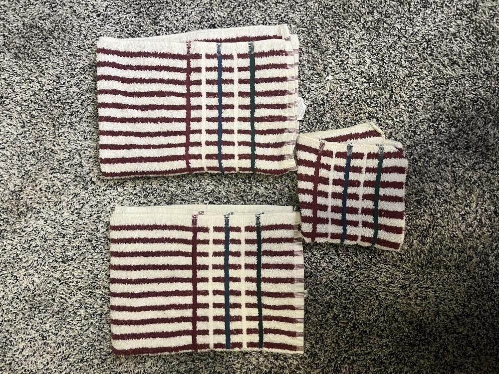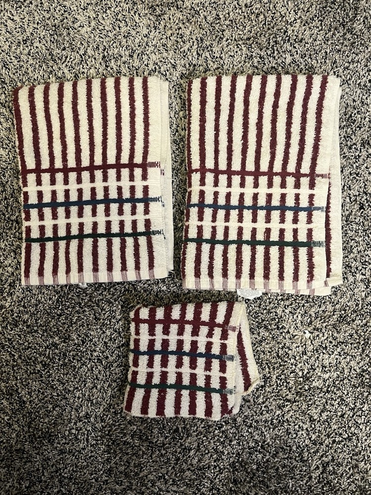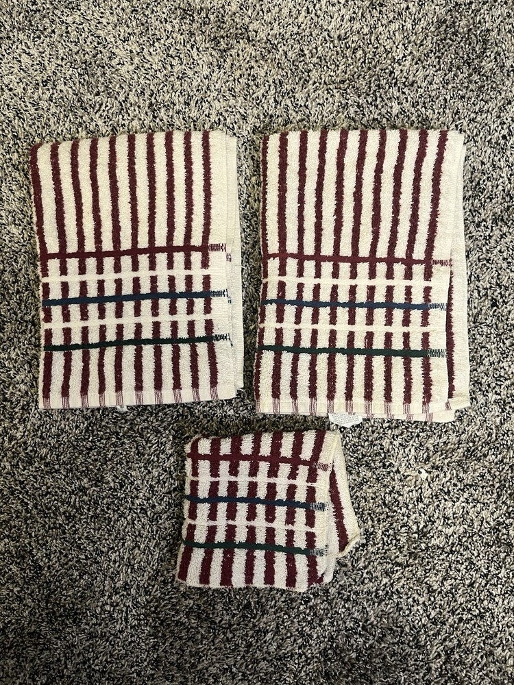 Martex Cotton Terrycloth Hand Towel Set with Washcloth in Red White Stripes