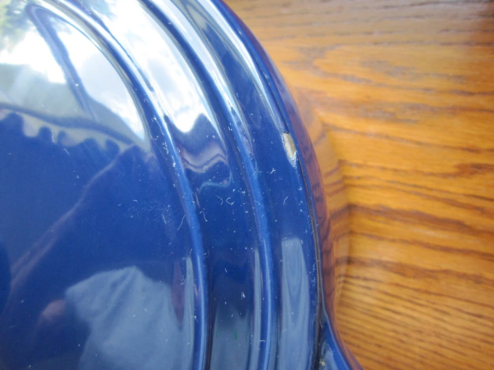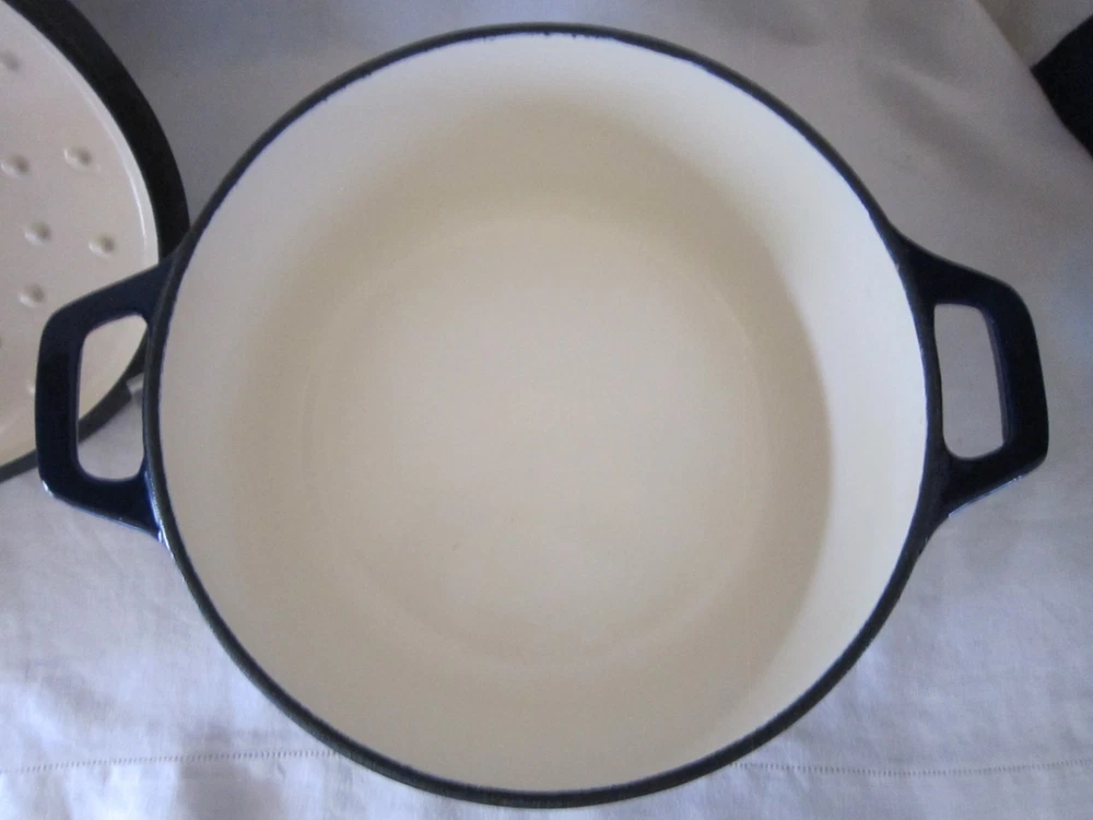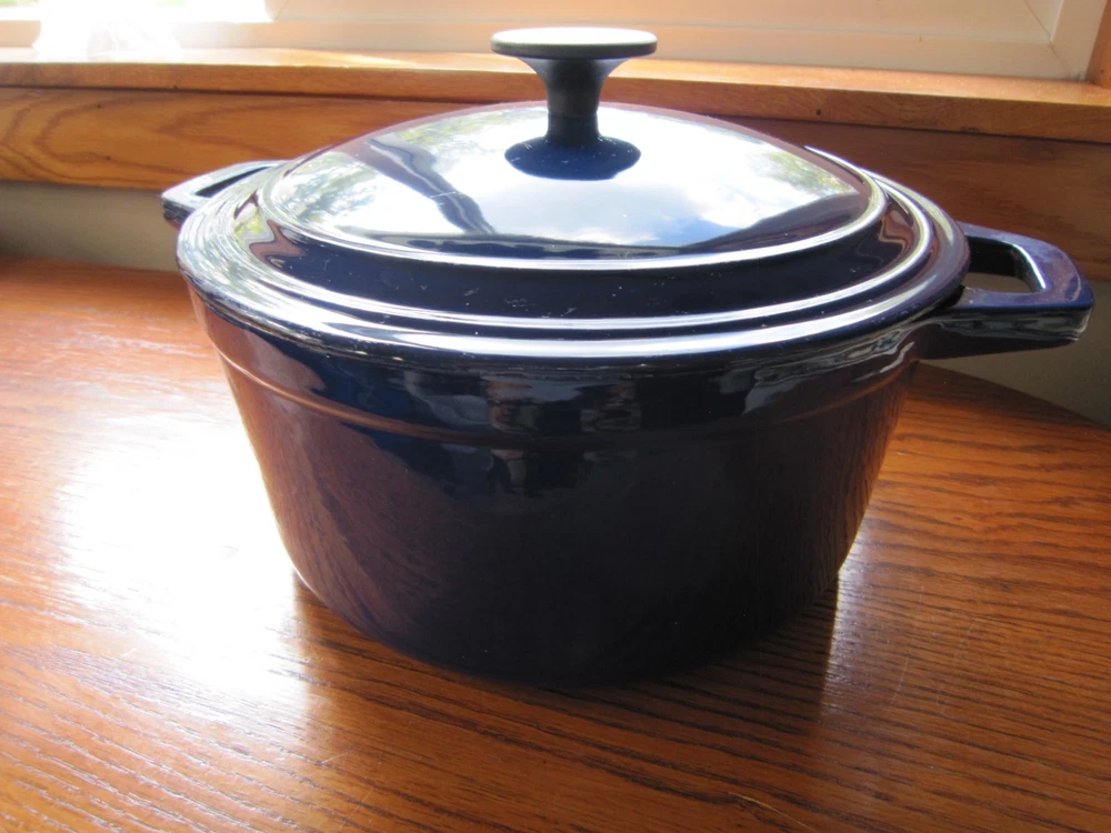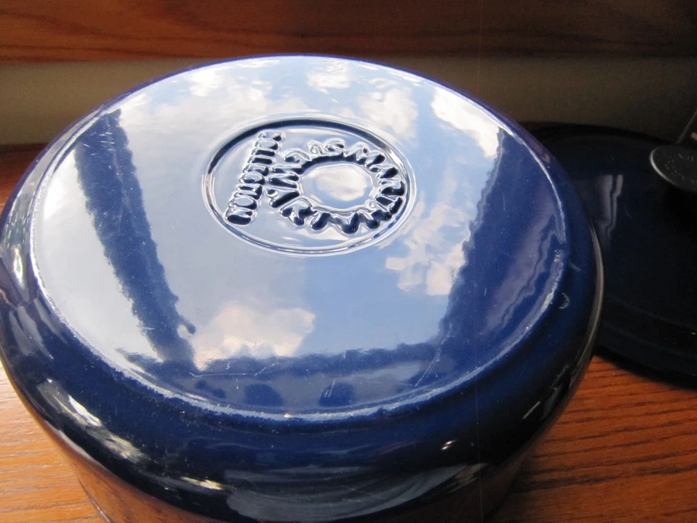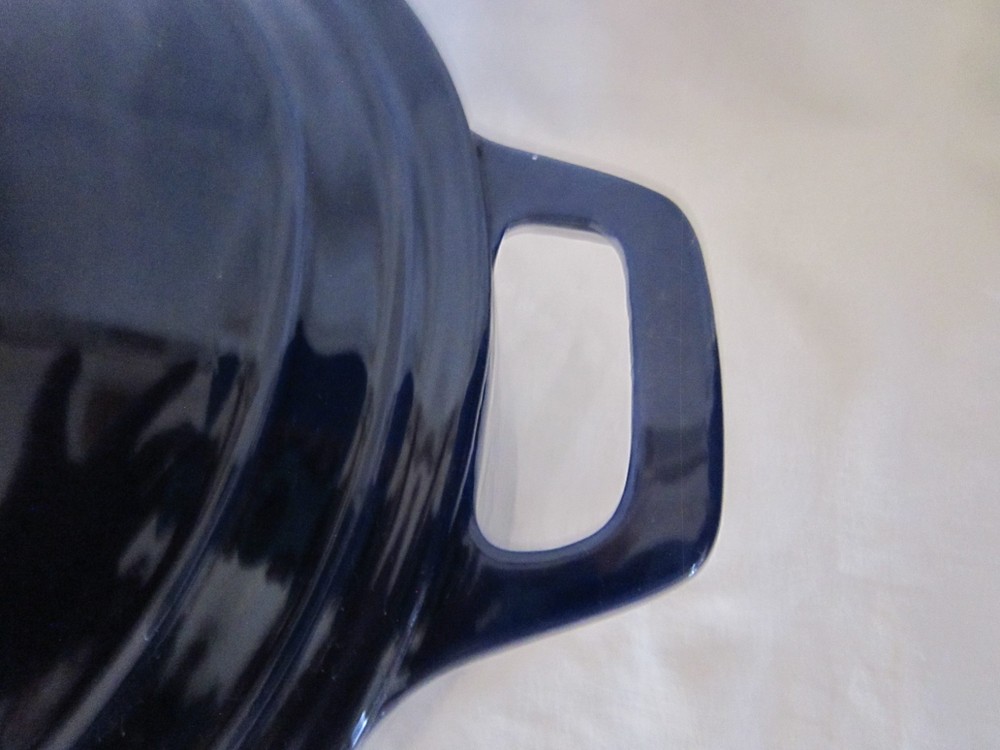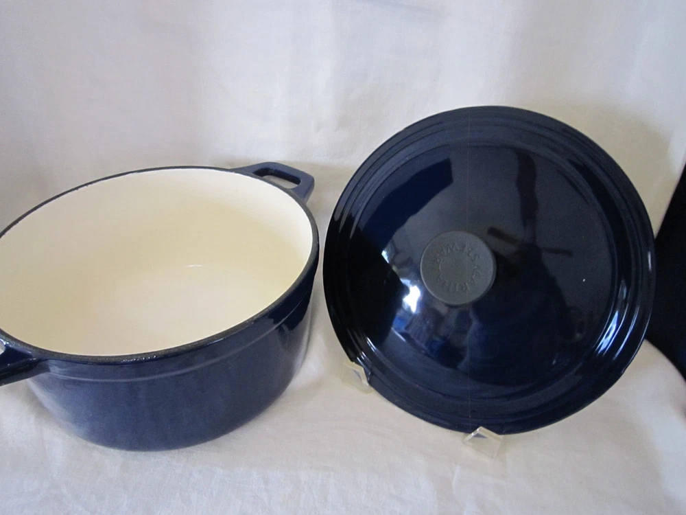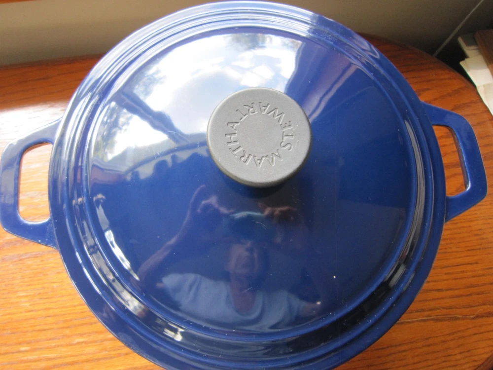 Beautiful Colbalt Blue Martha Stewart Enameled Cast Iron Dutch Oven Lid 5 Qt. 10” X 5” Holds 5 Quarts Sits Flat Small surface chip on Lid (See Last Photo) Please See Photos. Any Questions Feel Free to Contact Me.