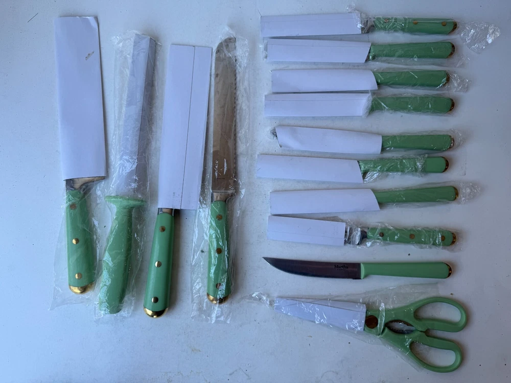Martha Stewart Cutlery Knife Set High Carbon Stainless Steel Blade (16-Piece) Description Martha Stewart Cutlery Knife Set High Carbon Stainless Steel Blade (16-Piece). Product Detail • Brand : Martha Stewart • B;ade Material : High Carbon Stainless Steel • Blade Color : Silver • Type : Cutlery Knife Set Please message me if you have any questions.