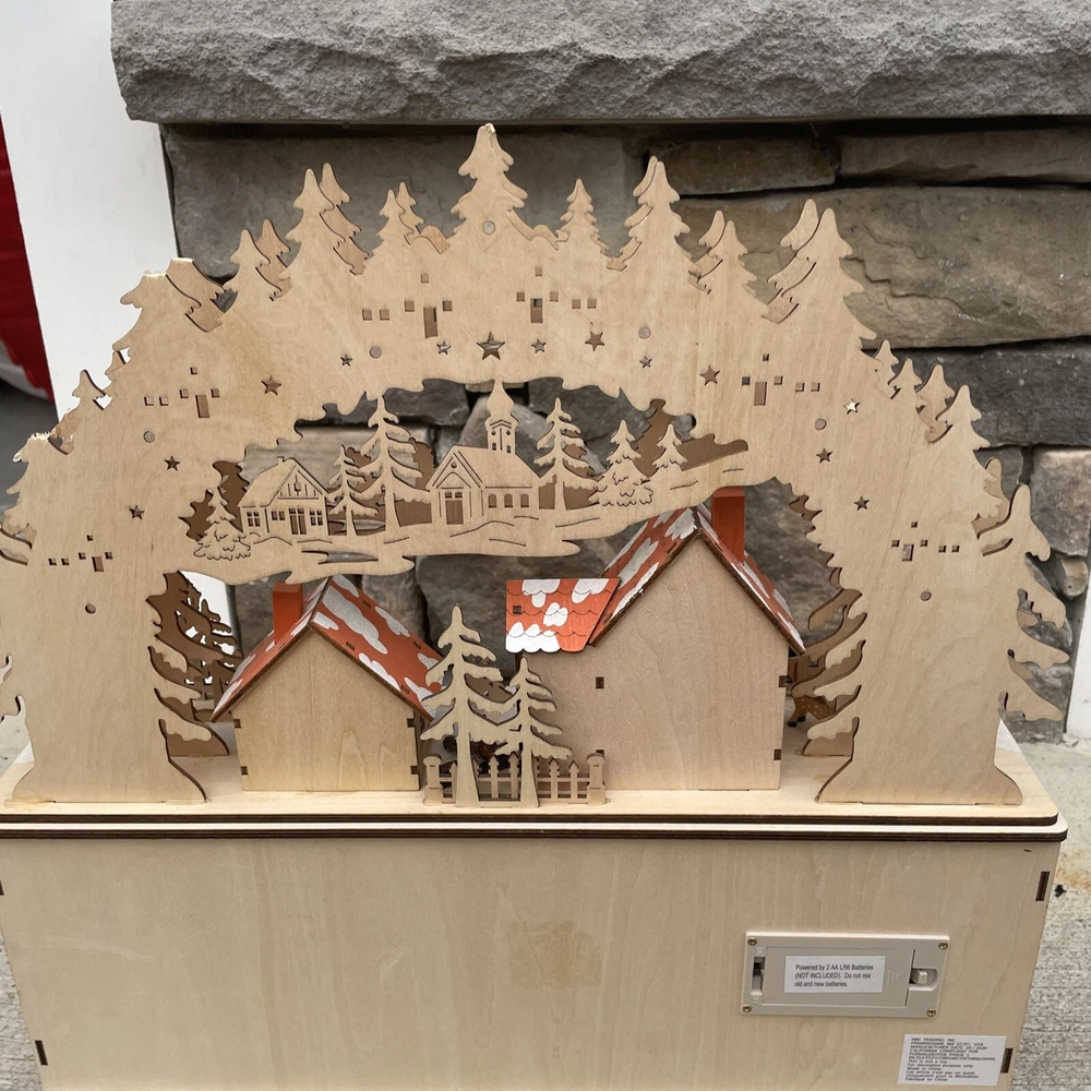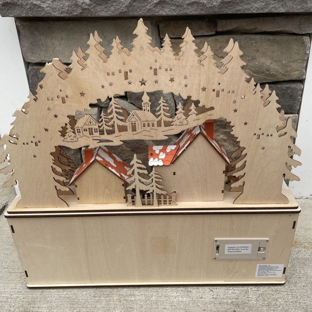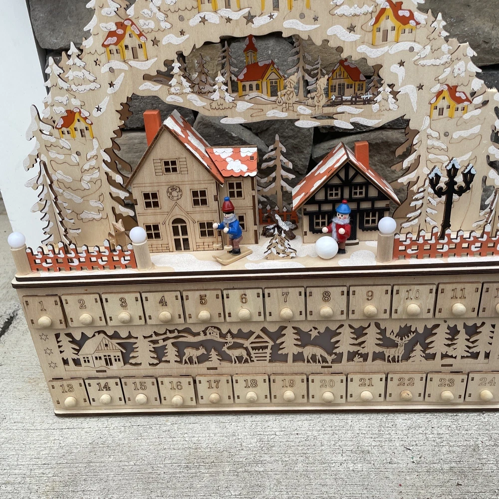 This festive Martha Steward Adventure calendar has led lights and has a lot going on. Please be aware and see pics as there are a few tree tips missing, otherwise a beautiful piece. The kidos will love it! Has led lights and takes 2?AA which are not included. You’ll love the details on this piece