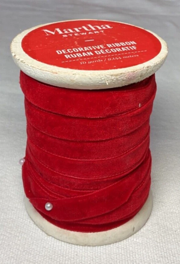 Martha Stewart RED VELVET Ribbon 10 Yards On WOODEN Spool 1/2 INCH NWT