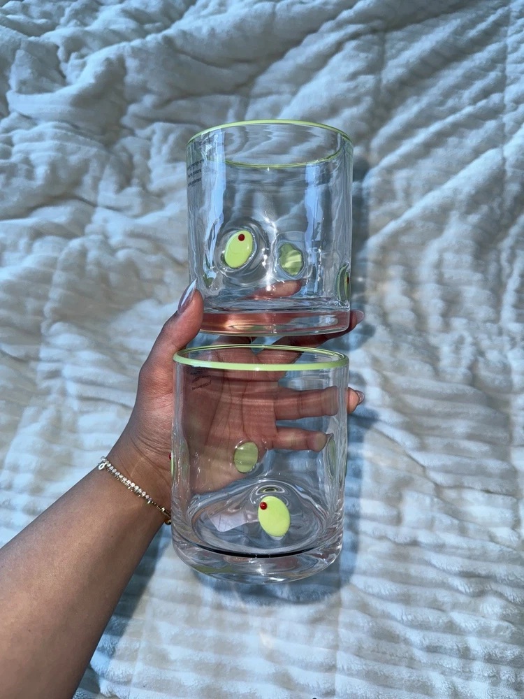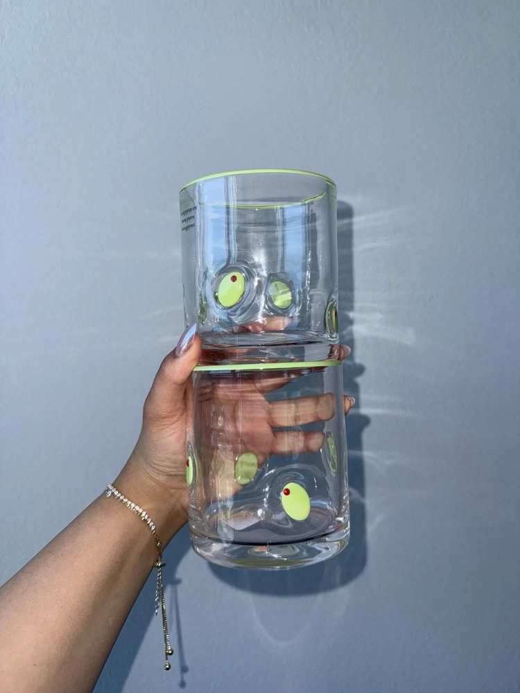 The Martini Olive Icon Glasses are a stylish and versatile addition to any home bar or collection. These round glass glasses feature a clear color with a playful martini and cocktail theme, perfect for all occasions. The hand wash only care instructions ensure that these glasses remain in top condition for years to come. Ideal for adults, these glasses are sure to elevate your drinkware game with their trendy design and unique Anthropologie dupes appeal.