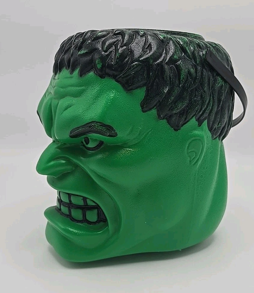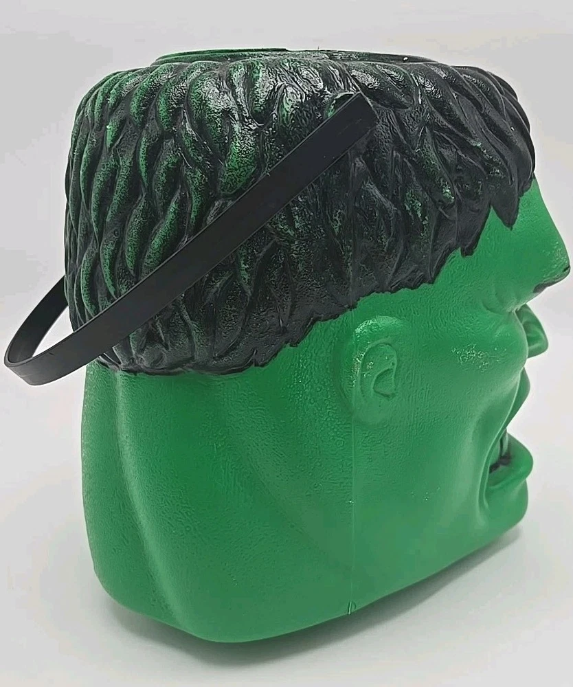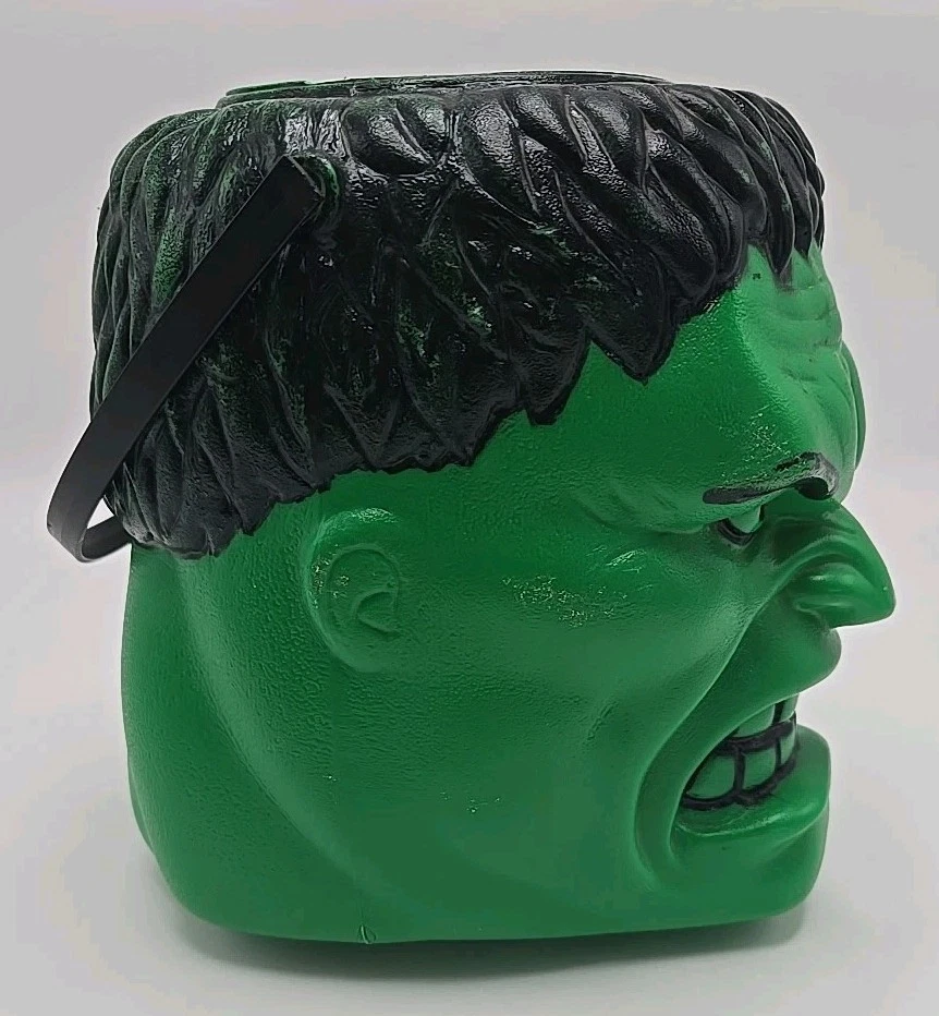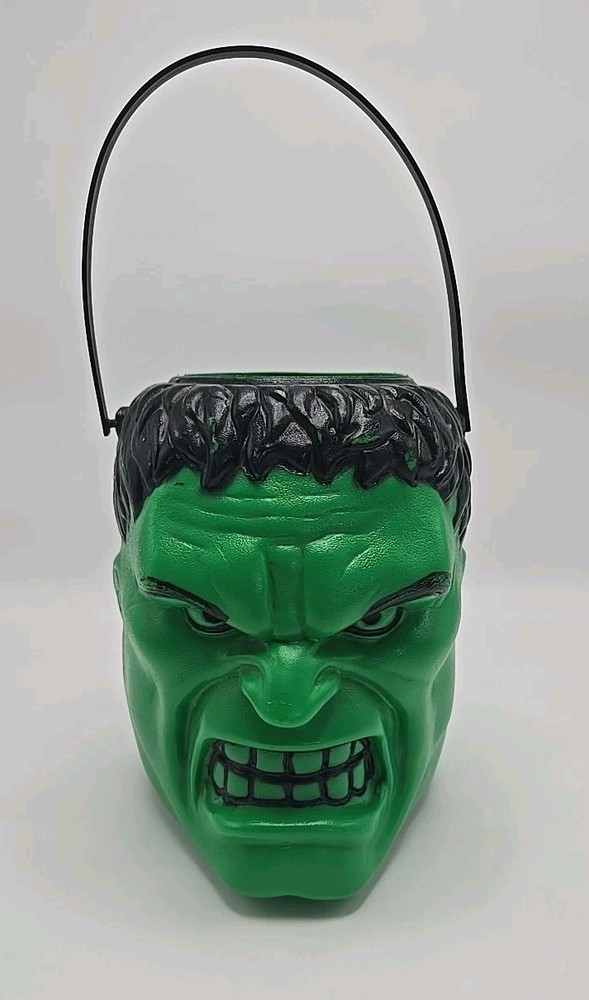 The Marvel Blow Mold Incredible Hulk 2003 Halloween Bucket is a collectible holiday item made of green plastic in the United States. This officially licensed product features the iconic Incredible Hulk character, making it a must-have for fans of the superhero. Pre-owned condition with light color peeling/missing on the black hair areas. No cracks or breaks but has some scratches. See the pictures for details and sizing as they are part of my description. Message me with any questions you may have. Thank you, and please take a look at my other items. V-33