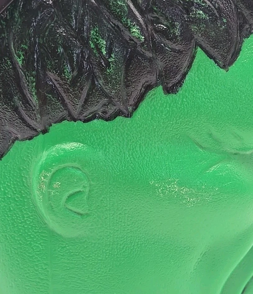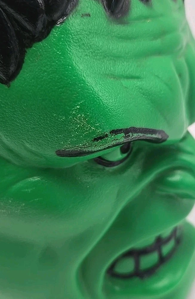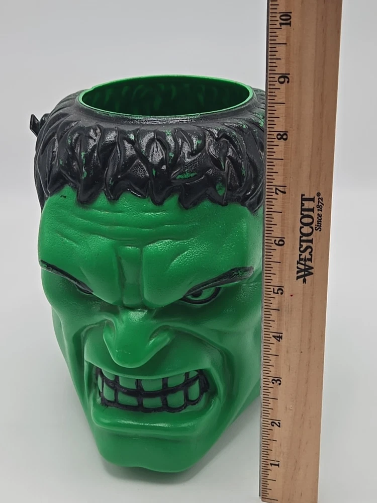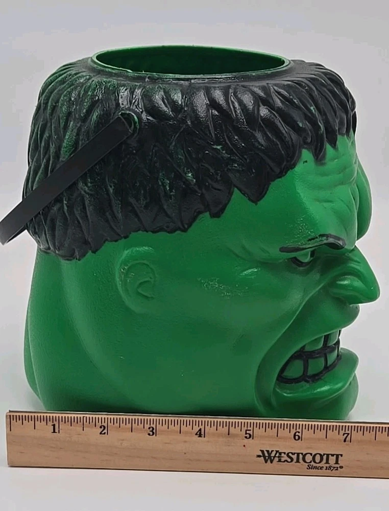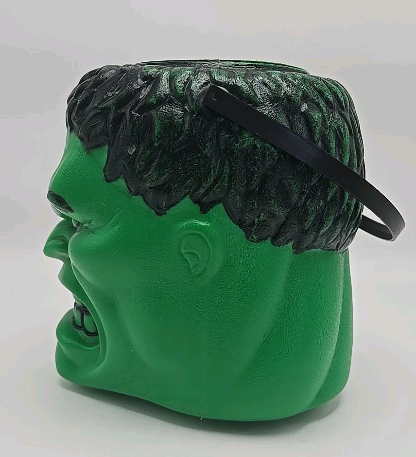 The Marvel Blow Mold Incredible Hulk 2003 Halloween Bucket is a collectible holiday item made of green plastic in the United States. This officially licensed product features the iconic Incredible Hulk character, making it a must-have for fans of the superhero. Pre-owned condition with light color peeling/missing on the black hair areas. No cracks or breaks but has some scratches. See the pictures for details and sizing as they are part of my description. Message me with any questions you may have. Thank you, and please take a look at my other items. V-33