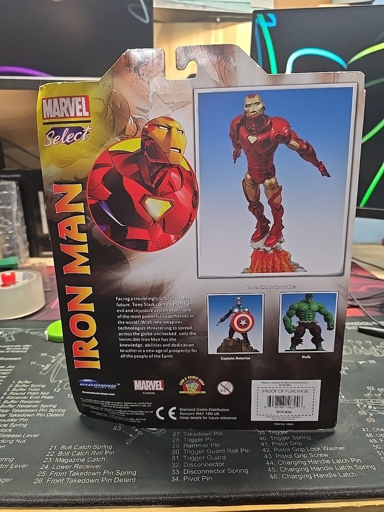 The Diamond Select Marvel Comics Iron Man Collector Edition Action Figure (#2) is a 7-inch tall action figure of the character Iron Man from the Marvel Comics franchise. This highly detailed figure is part of the Marvel Select line manufactured by Diamond Select Toys in 2008. It features a 1:10 scale and is designed for collectors aged 8 and above. The action figure showcases Iron Man's iconic armor and is a must-have for fans of comic book heroes. Box has light damage as seen in pictures