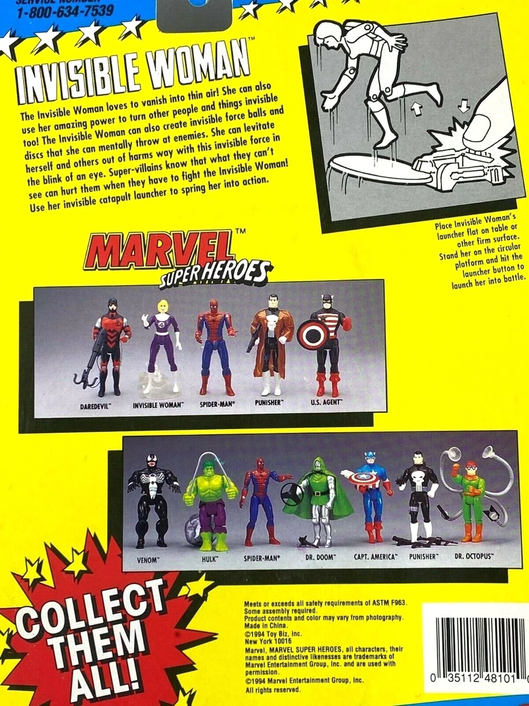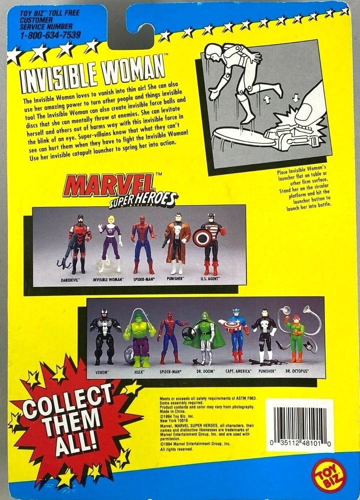 Marvel Fantastic Four Invisible Woman 5" Action Figure Super Heroes Vintage 1994 INVISIBLE WOMAN VINTAGE ACTION FIGURE FROM TOY BIZ 1994 CLASSIC PAINT AND SCULPT, FROM TOY BIZ PART OF THE FANTASTIC FOUR SERIES FROM OVER 30 YEARS AGO ONLY MINOR SIGNS OF ANY AGING OR SHELF WEAR COMES WITH CATAPULT POWER LAUNCHER WOULD MAKE A GREAT GIFT FOR ANY FAN OF THE FANTASTIC 4 ADD TO YOUR COLLECTION ✨✨✨✨✨✨✨✨✨✨✨ The VinKris Collection is committed to delivering a great experience! We will ship to you with the greatest of care All items are shipped in sturdy boxes We use packing materials appropriate for the product to help ensure safe delivery Shipments to the United States and Protectorates are handled via USPS International shipments will ship via Ebay's International Shipping Program All packages are shipped within 1 business day of payment We ship daily Monday through Saturday Worry free purchases, we stand behind everything we sell with free 30 day returns We have thousands of happy customers and our goal is 100% customer satisfaction We are happy to answer any questions