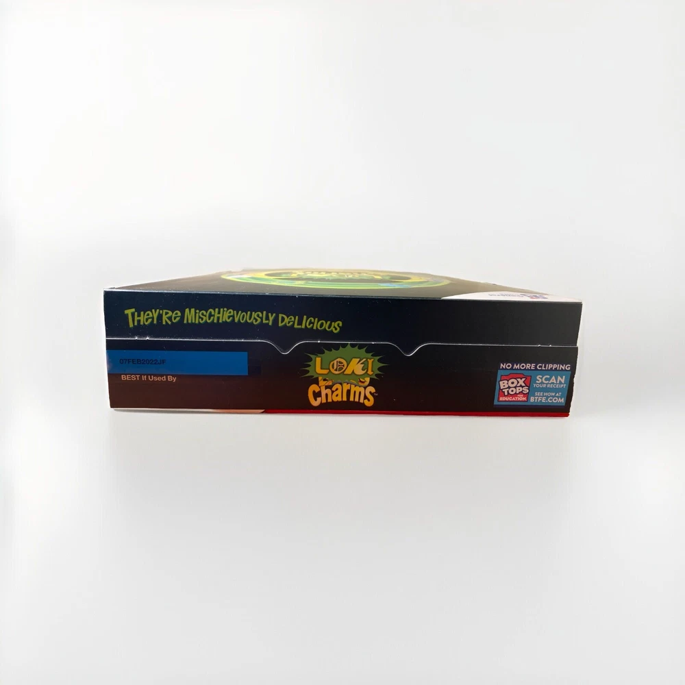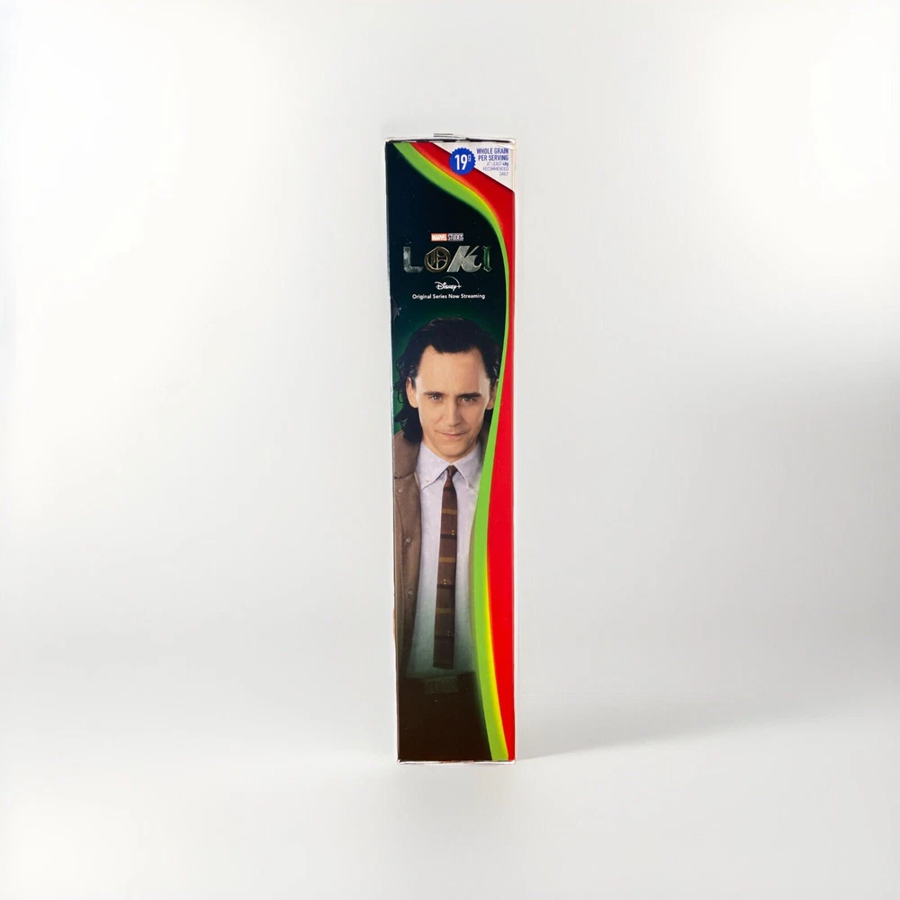 Unopened, sealed, great condition. Slight damage to box seen in images. Rare collectors item from 2021. Lucky Charms and Marvel collaboration. This limited edition Marvel Loki Charms Lucky Charms collaboration is a must-have for any cereal or comic book collector. With only 3500 made, this original piece is a rare find. The colorful charms feature the iconic Lucky Charms design with a Marvel twist, perfect for adding a touch of magic to any collection.