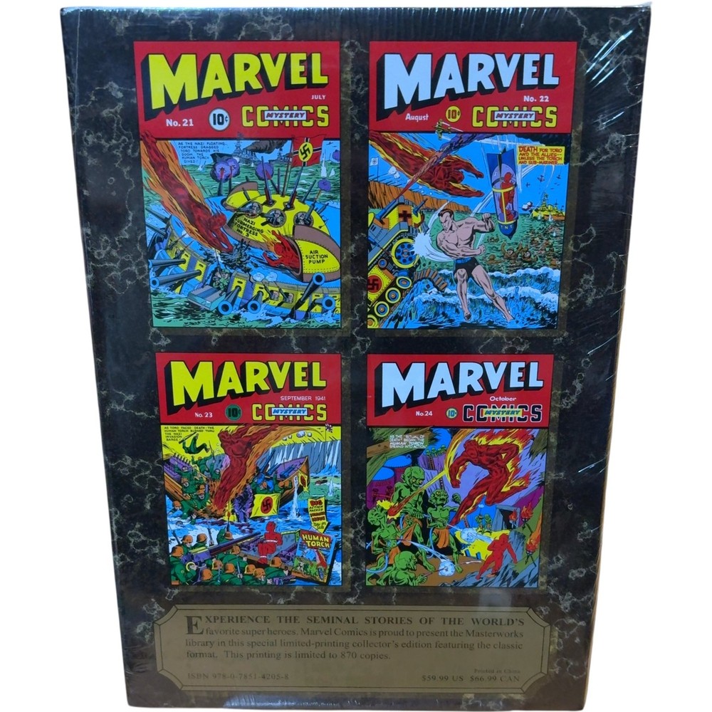 Title: Marvel Masterworks Golden Age Authors: Carl Burgos, Bill Everett, Jack Kirby, et al. Series: Marvel Mystery Comics Nos. 21-24 Illustrators: Various Format: Hardcover Publisher: Marvel Comics ISBN: 978-0-7851-4205-8 Features: Limited Edition Language: English Pages: Limited to 870 copies