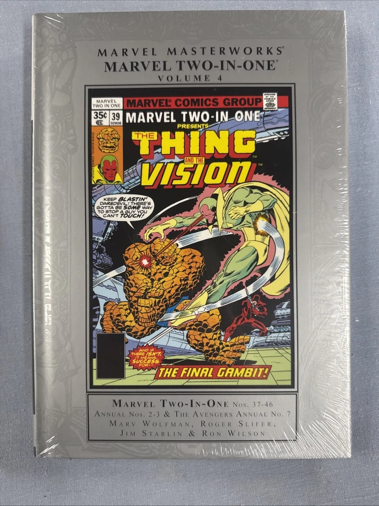 Marvel Masterworks MARVEL TWO-IN-ONE Vol #4 Hard Cover (2019) Global Shipping Description: Marvel Masterworks #356 MARVEL TWO-IN-ONE Vol #4 Hard Cover (2019) Global Shipping (W) Marv Wolfman & Various (A) Ron Wilson & Various (CA) Ron Wilson Our latest Masterworks offers you two heroes for the price of one! Yes, it's MARVEL TWO-IN-ONE, starring the world's most endearing pile of rocks, the Ever-Lovin' Blue-Eyed Thing! And his adventures begin - behind bars?! The Thing has been declared a public nuisance (and not just on Yancy Street), and it'll take the skills of both Matt Murdock and Daredevil to set him free! This marvelous Masterwork also features the debut of Project PEGASUS, the reality-bending Cosmic Cube, an army of android Visions, the Black Panther and Brother Voodoo vs. a zombie-vampire, Hercules, Captain Marvel - and a bruising Thing vs. Hulk battle! And it's all topped off with Jim Starlin's famous two-part cosmic epic pitting the Avengers and the Thing vs. Thanos and his Infinity Gems! Collecting MARVEL TWO-IN-ONE (1974) #37-46 and ANNUAL #2-3, and AVENGERS ANNUAL #7. Rated T Masterworks is in Near Mint / Mint unread factory shrink wrapped condition. Payment We prefer Paypal payment but also accept all approved eBay payments. Buyer must send payment within 3 days of purchase. Please include listing number in your payment. Shipping Buyer pays $4.75 for MEDIA MAIL shipping for orders in the UNITED STATES. Combine shipping is available at NO additional cost for in the United States. For international orders please email us for exact shipping cost. We accept Chks, Mo and credit cards via Paypal. Please check out our other auctions, EBAY store listings. Thanks for looking.