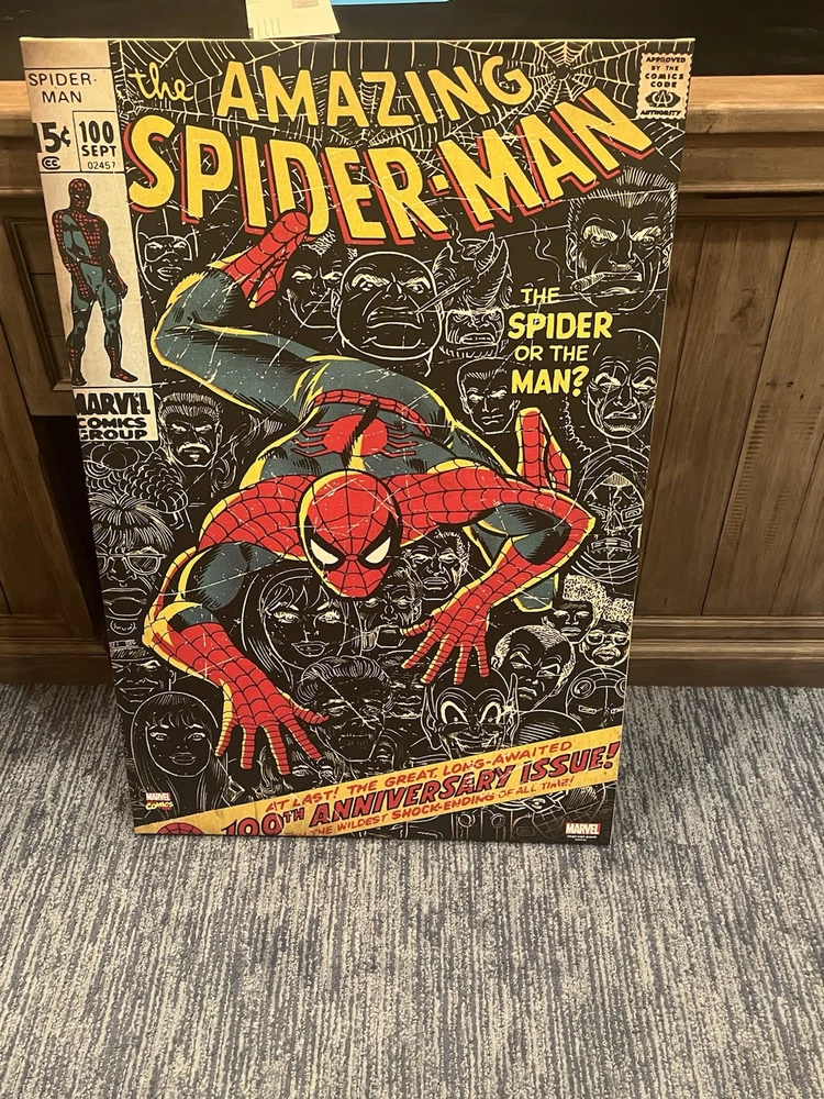 Set of 10 Marvel canvas wall art posters. Each poster is 36 x 24. They are made of a framed canvas and include the following characters: Iron Man, Captain America, Spider-Man, Hulk, Wonder Woman, Batman, and Superman. Looking to sell the full set but open to offers if single pieces are desired. These posters are in great condition!