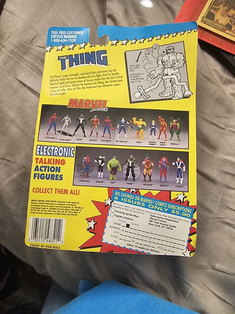 Featured Person/Artist: The Thing Theme: Comic Book Heroes Original/Licensed Reproduction: Original Material: Plastic Brand: Marvel Time Period Manufactured: 1990-1999 Character: The Thing Franchise: Marvel Universe Vintage: Yes Movie: Fantastic Four Type: Action Figure