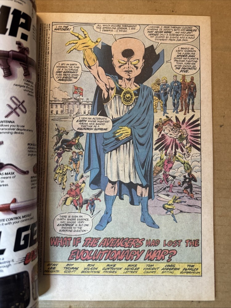 This is a must-have comic book for any Marvel fan. What if the Avengers lost the Evolutionary War? This is a first printing, key issue of What If (Vol. 2) #1, published in 1989 by Marvel Comics. The story features iconic characters such as Captain America, Wolverine, and the Fantastic Four, and is part of the Copper Age (1984-1991) era. The comic book is in excellent condition, with a grade of 9.0 Very Fine/Near Mint. It is boarded and has been well-preserved. The artist/writer, Roy Thomas, created a fantastic universe that is sure to captivate any comic book collector. Don't miss your chance to own this rare and valuable piece of Marvel (MCU) history.