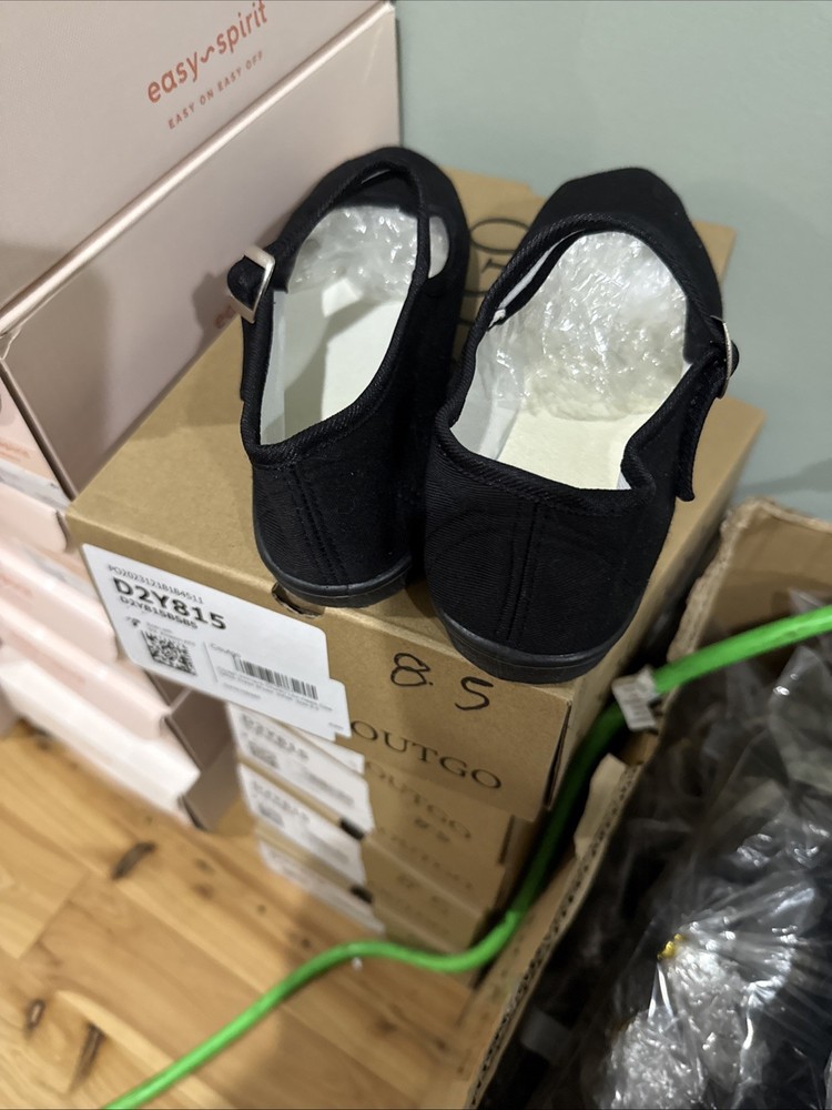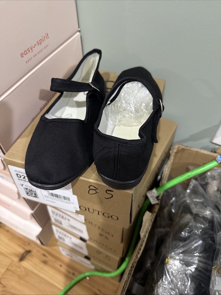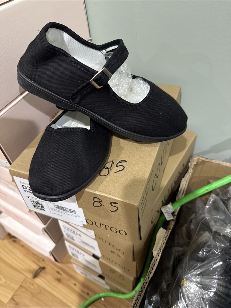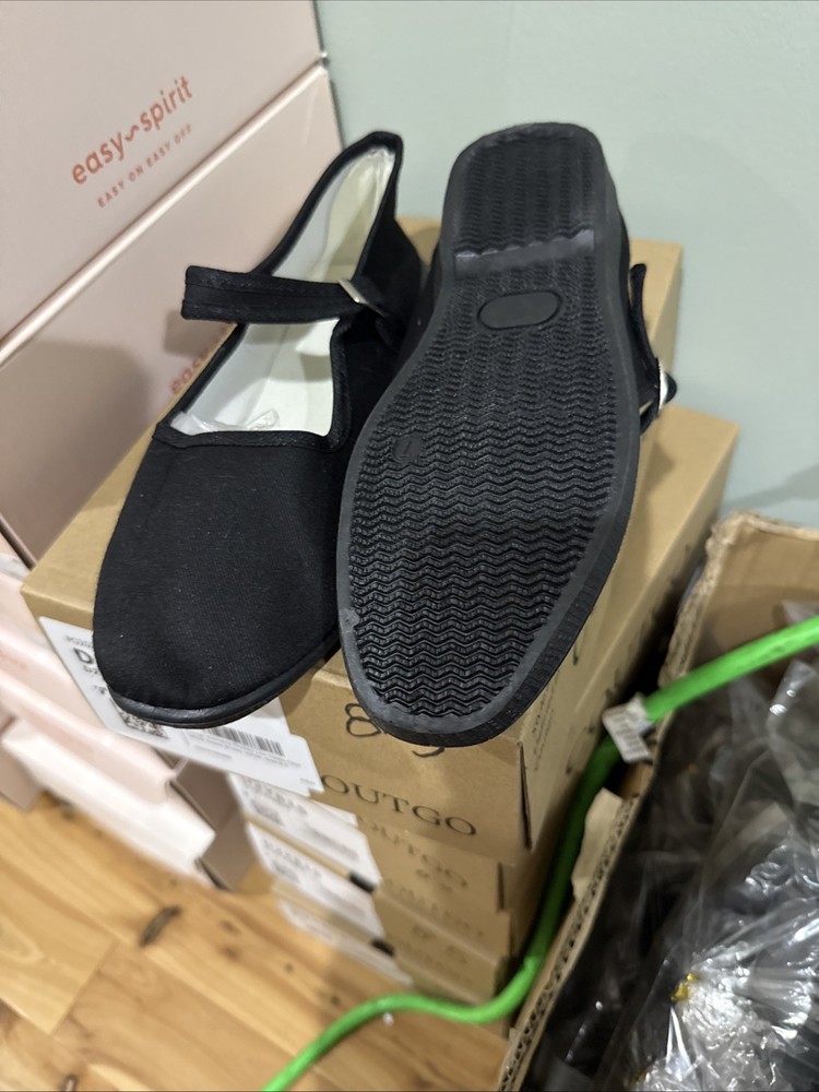 Mary Jane's Black Cotton Slip On Adjustable Strap Size 9, New Without Box
