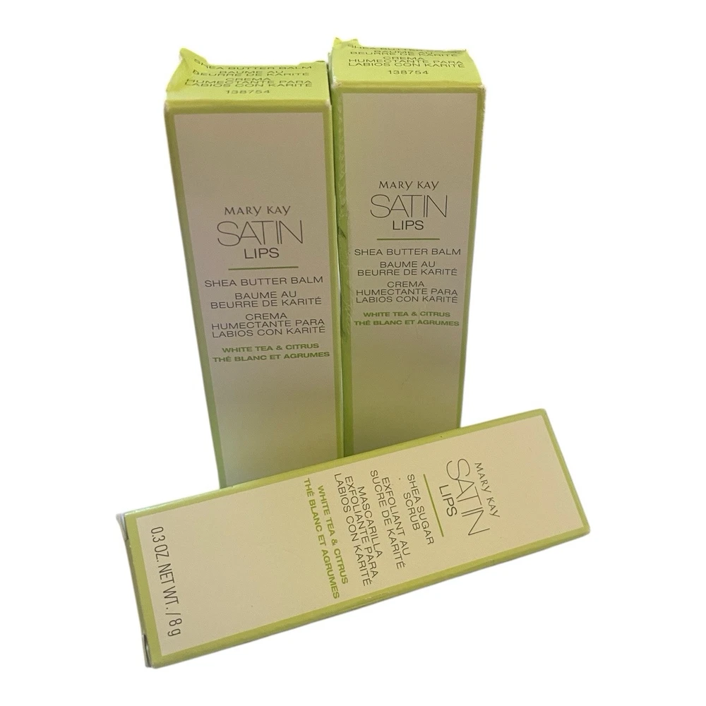 Mary Kay 3-Pack Satin Lips Balm & Scrub Set with Shea Butter in White Tea Citrus