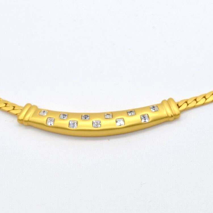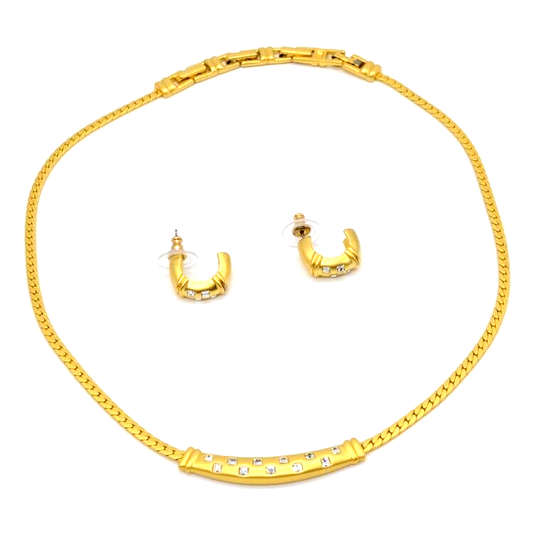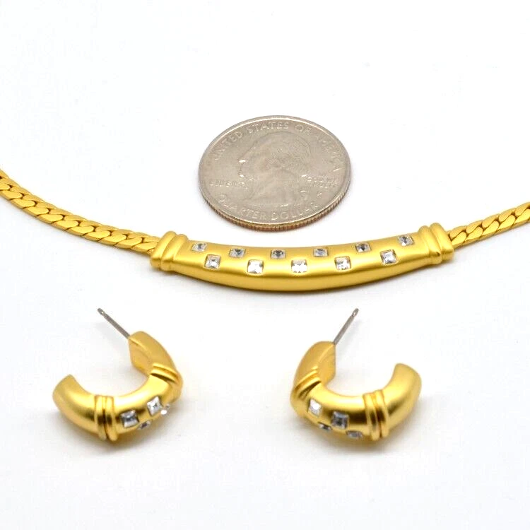Vintage 1970s Christian Dior Gold Choker Necklace with Ruby & Diamond Crystals and Matching Earrings