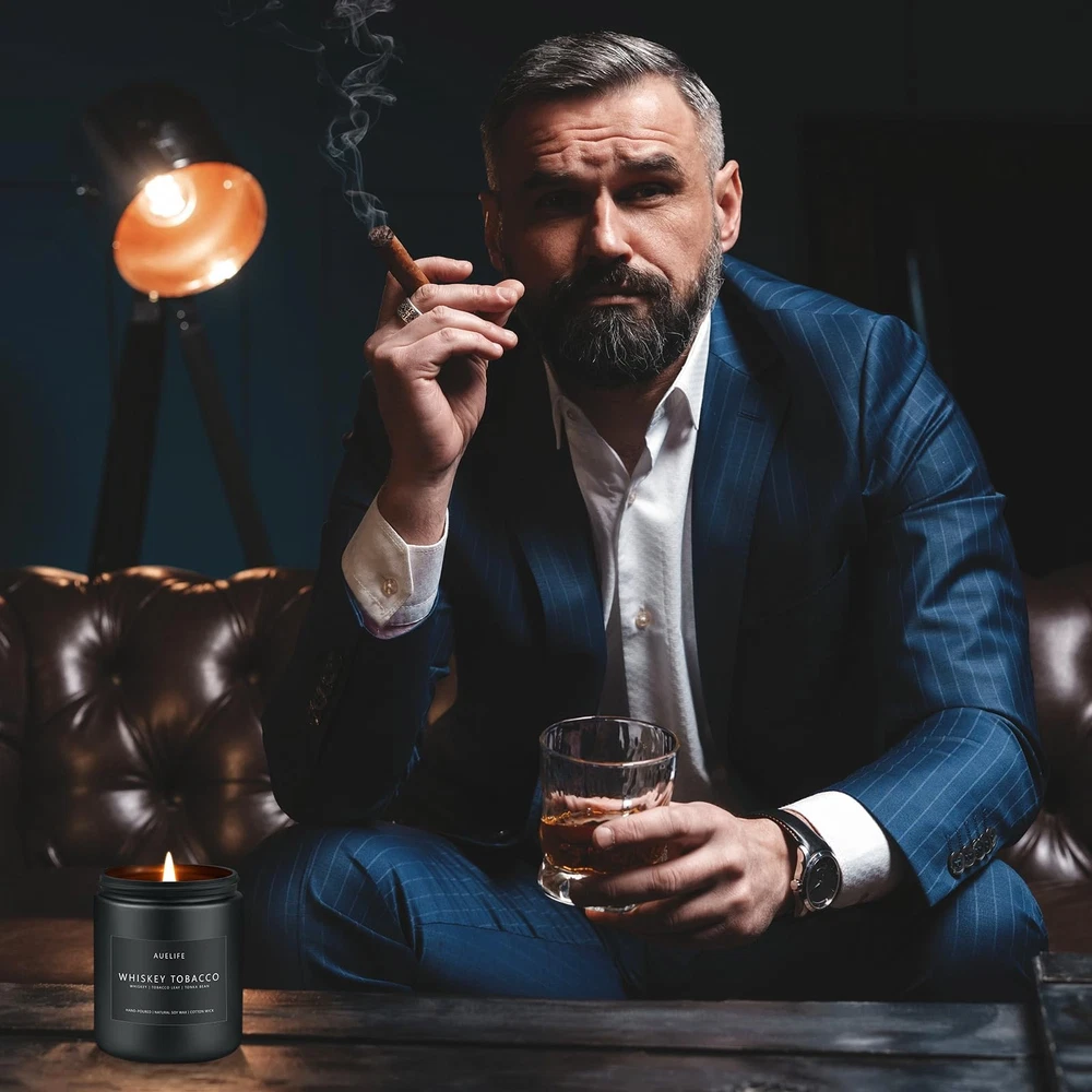 Container Type: Jar Packaging Type: Reusable Material: Soy Wax Candle Type: Container Candle gtin13: Does not apply Style: Black Jar Pattern: Solid Specific Uses For Product: Home Fragrance, Decoration, Celebration, Aromatherapy, Meditation Care Instructions: Keep Away From Drafts, Flames, And Heat Sources Target Gender: Unisex Wick Quantity: 1 Model Name: A017-17 Item Shape: Cylindrical Size: Pack Of 4 Material Type Free: Paraffin, Beeswax, Gel Indoor Outdoor Usage: Indoor Weight: 3.59 Pounds Seasons: All Season Type: Does not apply UPC: Does not apply Target Audience: Men Package Dimensions LxWxH: 7.32x7.01x4.09 Inches Scent: Mahogany/Whiskey Tobacco/Rum & Oak/Cedar Material Feature: Long-Lasting Burn With A Strong Fragrance Release Model Number: A017-17 Unit Count: 4.0 Theme: Masculine Brand: Auelife Color: Black Jar Container Material: Glass