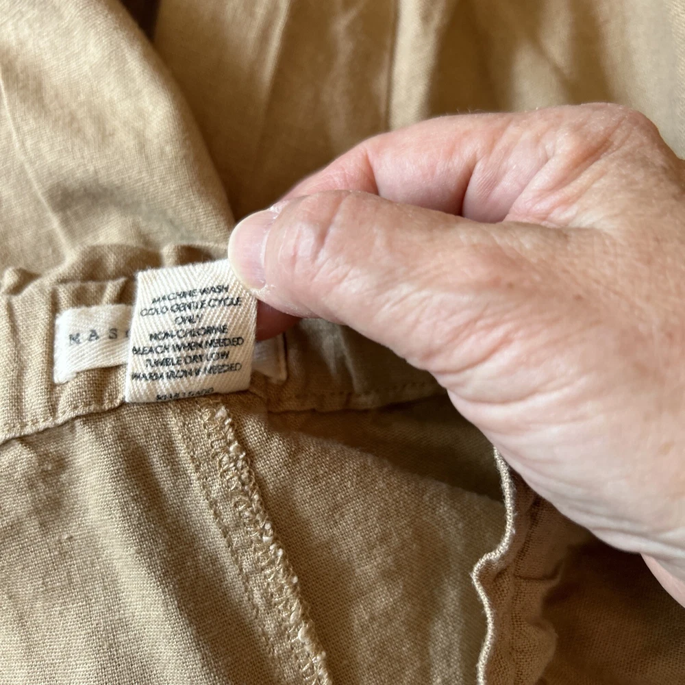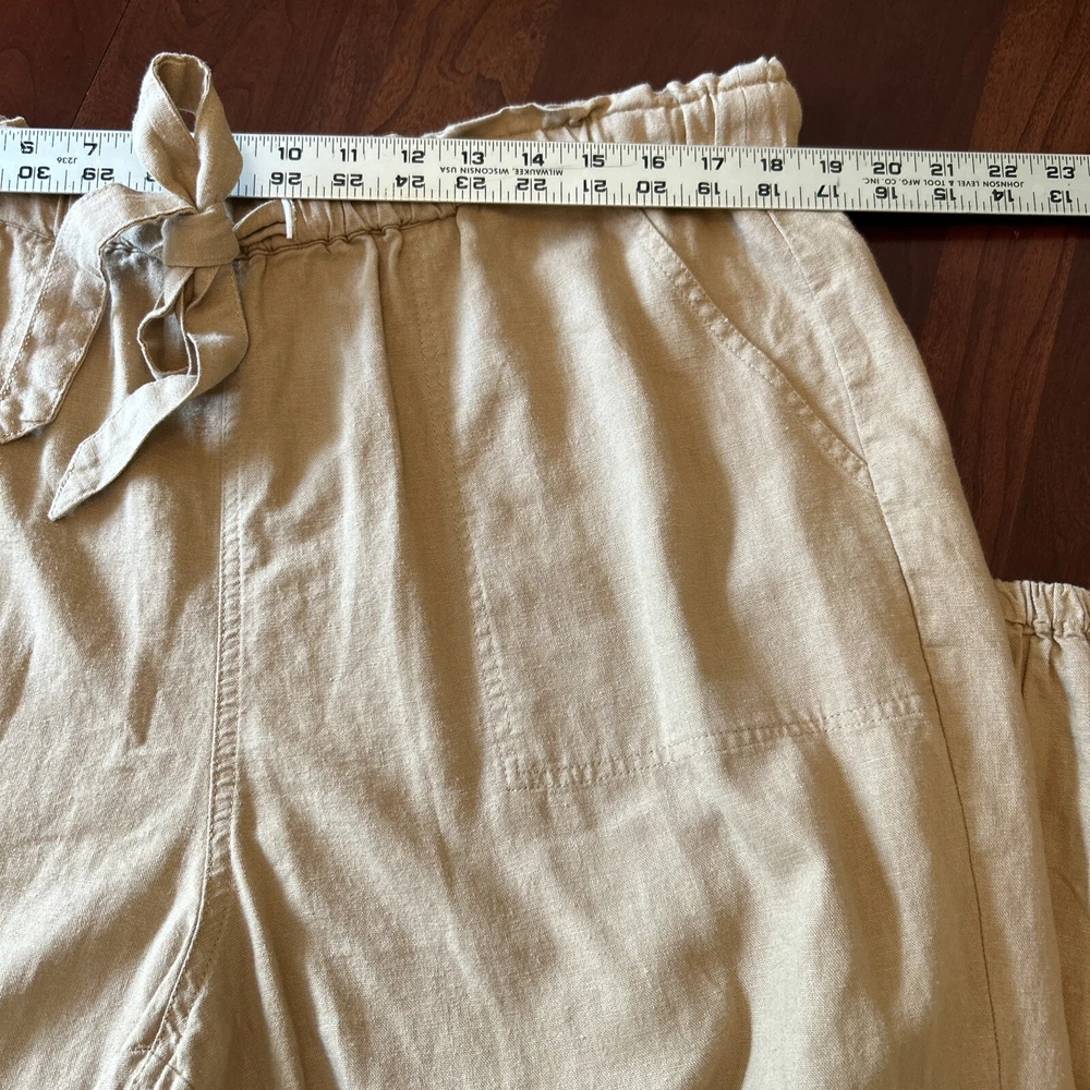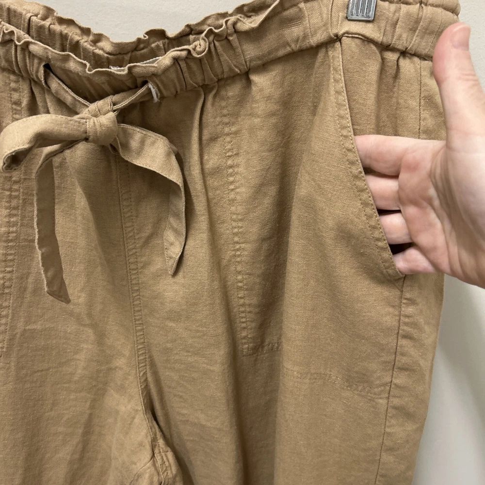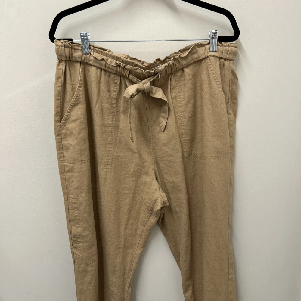 Mason & Belle Womens Joggers XXL Tan Tie Waist Belted Utility Linen Blend Elevate your casual wardrobe with these stylish Mason & Belle women's joggers. Crafted from a linen blend fabric, these pants feature a tie waist belted closure, elastic hem, and deep cargo style front pockets for a comfortable and relaxed fit. The jogger design and flat front create a flattering silhouette, perfect for any occasion from travel to parties or just running errands. These pants are available in size 2XL and come in a trendy brown color that is perfect for summer, fall, or spring. Fit- XXL fits around a size 16. Bohemian, Summer, Island, Vacation, Beach, Lightweight, Breathable, Coastal