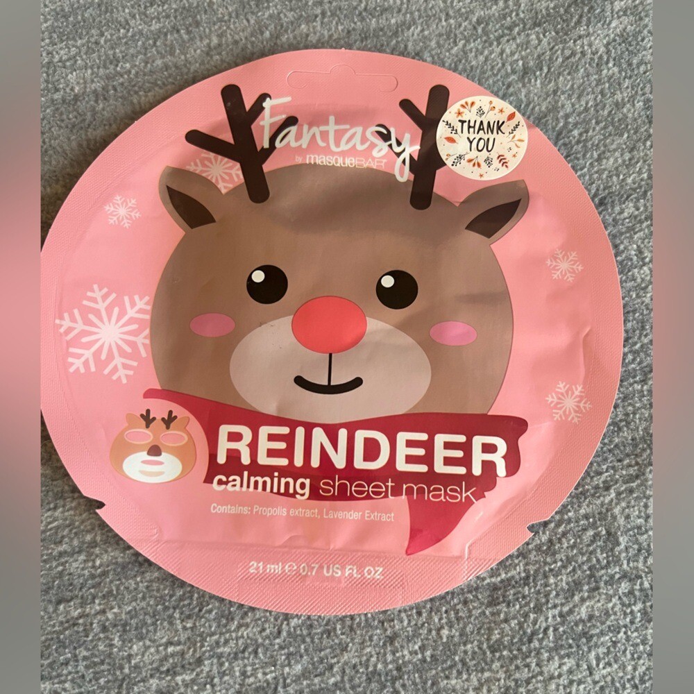 Fantasy by Masque Bar Set of 4 Sheet Face Masks Skincare DIY Feminine New Set of four Fantasy by Masque Bar themed sheet masks. Includes Reindeer, Moose, Snowman, and Penguin designs. Perfect for a fun DIY at home skincare routine. -Reindeer- calming - Propolis/Lavender extract -Snowman -hydrating-witch hazel water /anise fruit extract -Moose-moisturizing-mushroom extract and which hazel water -penguin-purifying-coffee seed and licorice extract Condition- new in packaging Size-one size fits most See photos for additional information My items are primarily thrifted and I do my very best to note any imperfections/callouts. Wash to wear - use measurements provided and match to clothes you currently own to determine best size match Ships Next Day Monday - Friday My items are stored in a pet/smoke free home Thanks for stopping in and looking! Lisa