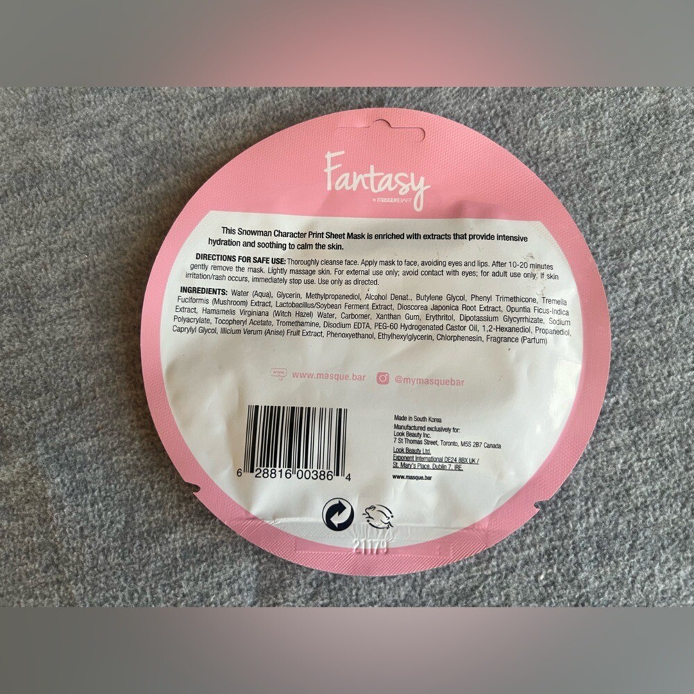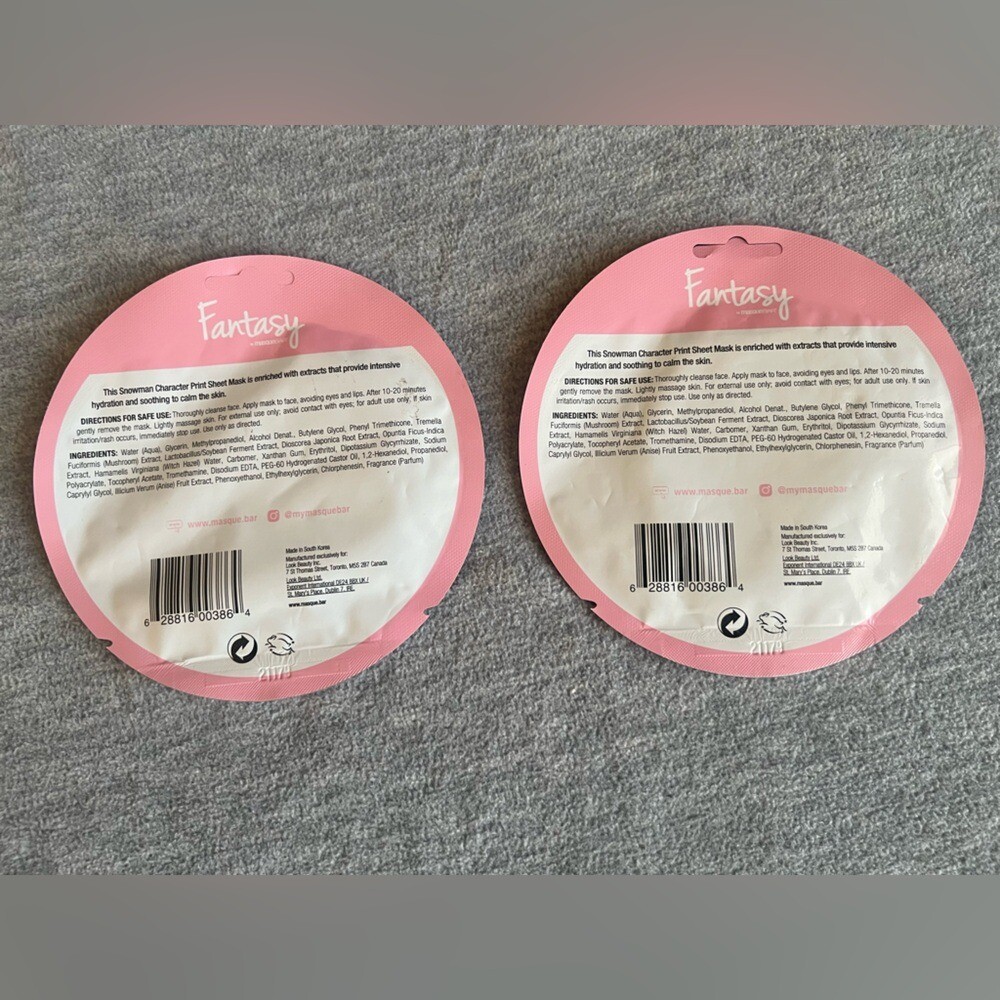 Fantasy by Masque Bar Snowman Hydrating Sheet Face Masks Set of 2 Skincare DIY Set of 2 Fantasy by Masque Bar Snowman hydrating sheet masks. Condition- new in packaging Size-one size fits most See photos for additional information My items are primarily thrifted and I do my very best to note any imperfections/callouts. Wash to wear - use measurements provided and match to clothes you currently own to determine best size match Ships Next Day Monday - Friday My items are stored in a pet/smoke free home Thanks for stopping in and looking! Lisa