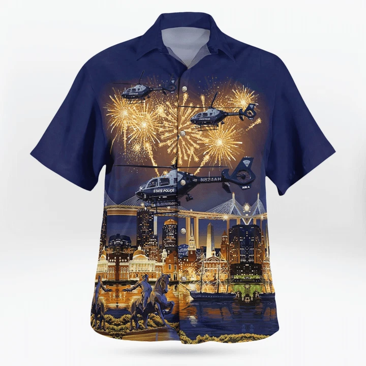 Massachusetts State Police Eurocopter Ec 135T2 4Th Of July Hawaiian Shirt