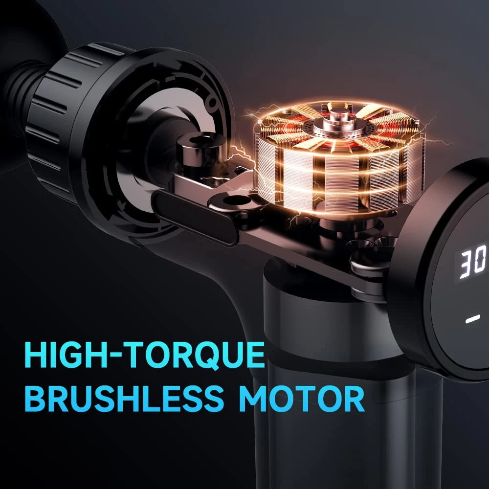 9 Massage Heads: This massage gun features 6 interchangeable massage heads (D-shaped, bullet, flat, thumb, U-shaped) designed to target different muscle groups and provide customized relief through percussion massage technology Relieve Soreness & Back Pain and Stress: 30-speed levels, you can easily customize the intensity of your massage, ranging from gentle awakening of muscles to a deep, professional-like massage. Including options for deep tissue. Ideal for use in your legs, arms, back, torso and neck shoulder Features: Built with high-quality materials for durability, this massage gun features a smart LED display showing speed and battery levels, along with a simple on/off button operation Powerful Yet Quiet: Featuring a lightweight and ergonomic design, this massage gun is an ideal travel companion, allowing you to take it with you to the gym, office, or on vacation. It works silently so you can use it without disturbing others Extended Battery Life: Constructed with high-quality materials, Mini Massage Gun is built to last. With rechargeable battery & smart LED display: Powered by a rechargeable battery. The built-in display shows off speed and battery percentage, so you always know when to charge.(Note: The on button is on the LED screen, press and hold for 2 seconds to switch on, and press and hold for another 2 seconds to switch off)