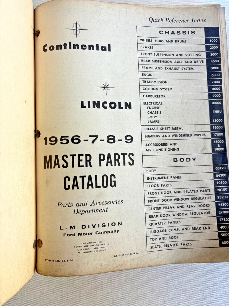 Master Parts Catalog- Continental Lincoln 1956-1959