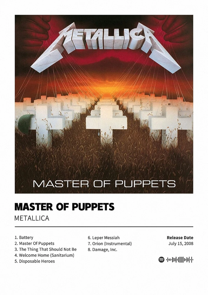 Master of Puppets - Metallica Album Poster 20x30" Custom Music Canvas Poster
