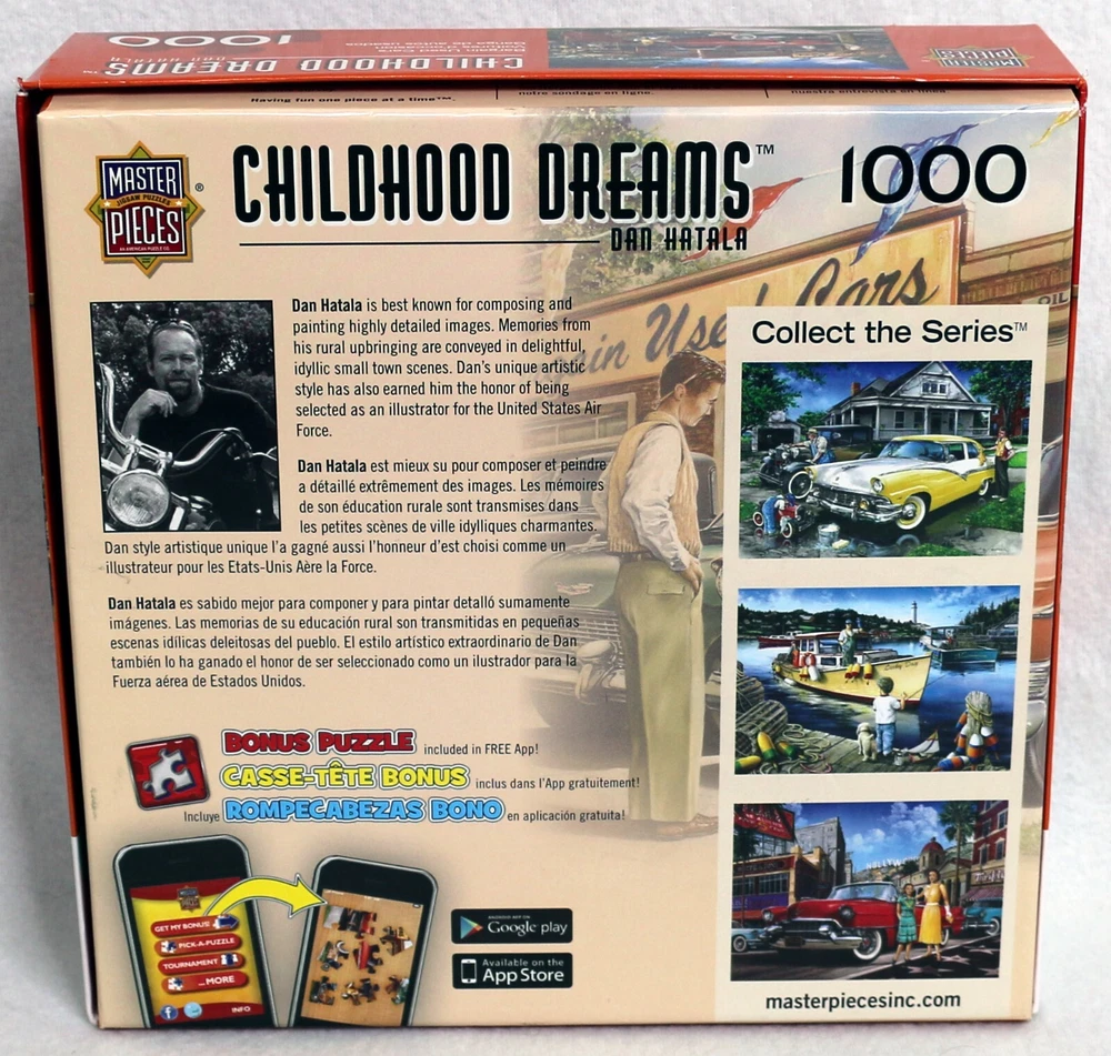 This MasterPieces jigsaw puzzle is a great addition to any puzzle collection. With 1000 pieces, it provides a fun and challenging experience for puzzle enthusiasts of all ages. The puzzle features a multi-color nostalgic design with a theme of Childhood Dreams, and is made of high-quality cardboard material. The puzzle is interlocking and comes from a smoke-free home, making it a perfect choice for a family activity or a solo puzzle night.Recommended for ages 14 and up, this puzzle is sure to provide hours of entertainment. Doing puzzles has some hidden benefits Excellent qualities : Cultivate concentration, patience, and temper your will Movement development : Train hand-eye coordination and precise small movements Spatial intelligence : Improve visual discrimination of colors and shapes Critical thinking ability : Understand the relationship between parts and the whole, and draw inferences from one example to explore the future Relaxes your mind : Relieve work pressure and release yourself Brain development : Enhance memory and may help prevent or slow brain degeneration Puzzle pieces are all bagged. Each item we ship is carefully packaged to prevent any damage and is shipped immediately with tracking. Anticipated Benefits of Puzzles for Children Overcoming attention deficit Strengthening visual memory Improving problem solving skills Strengthening hand-eye coordination Improve fine motor skills Improve gross motor skills Shape recognition ability Gain the ability of setting goals Learning patience