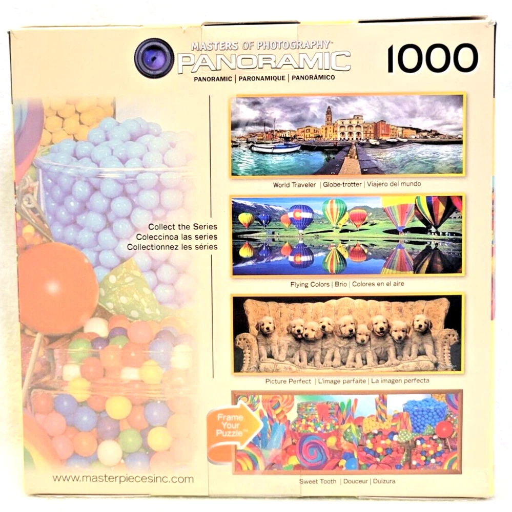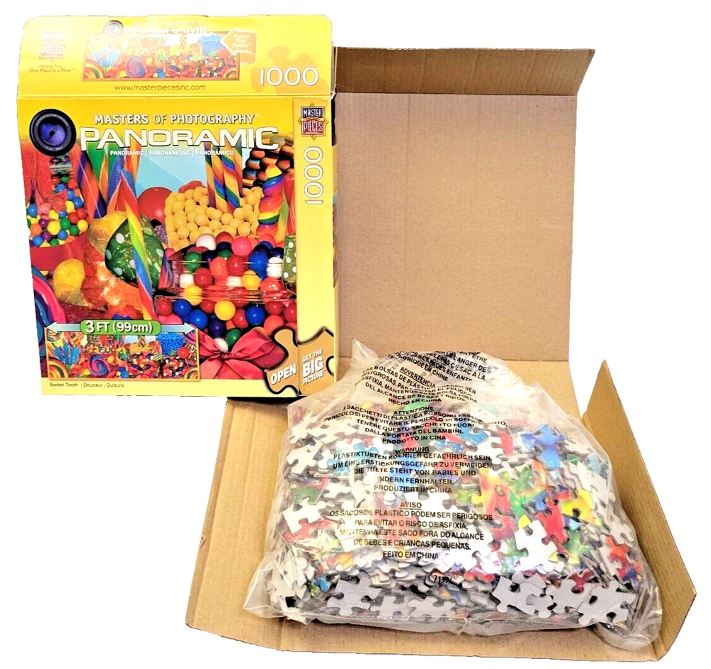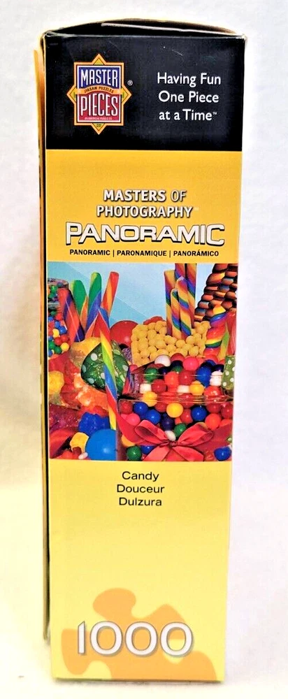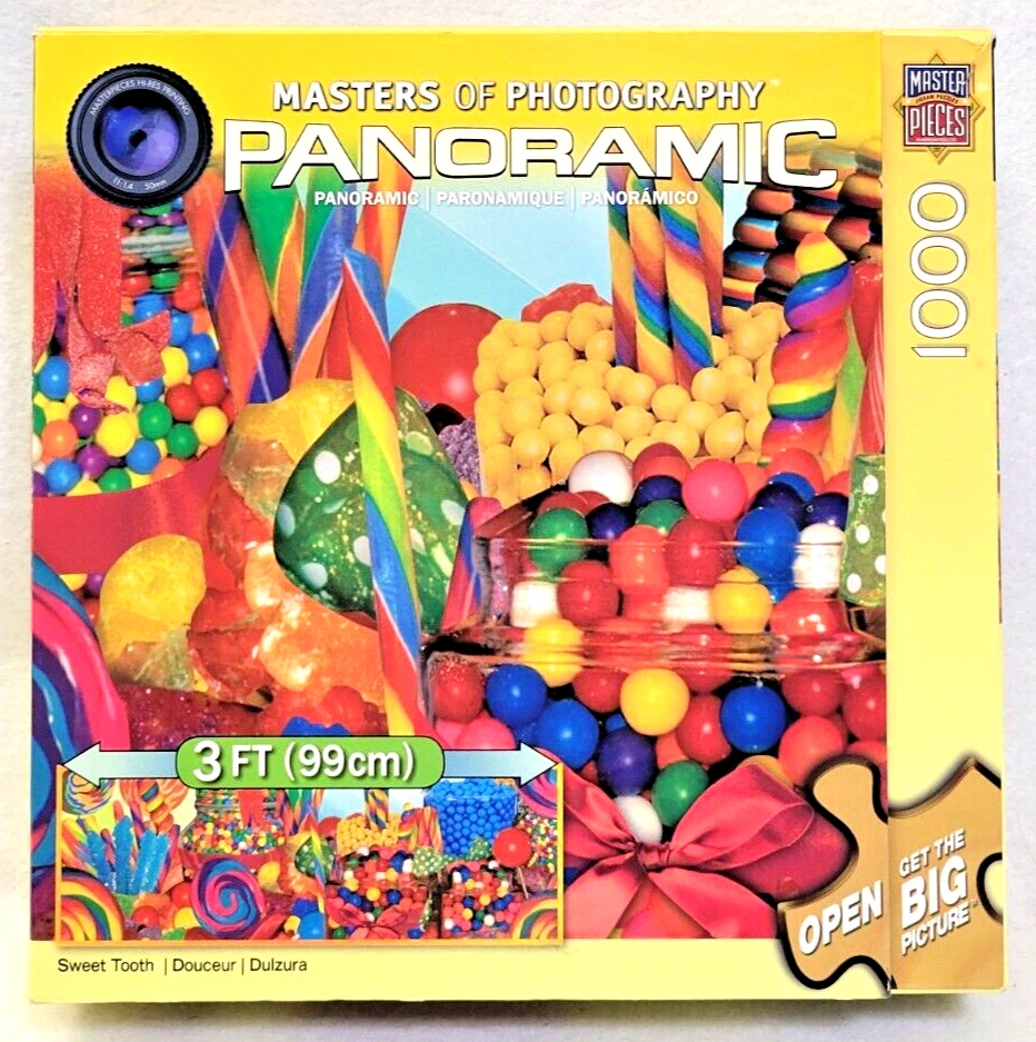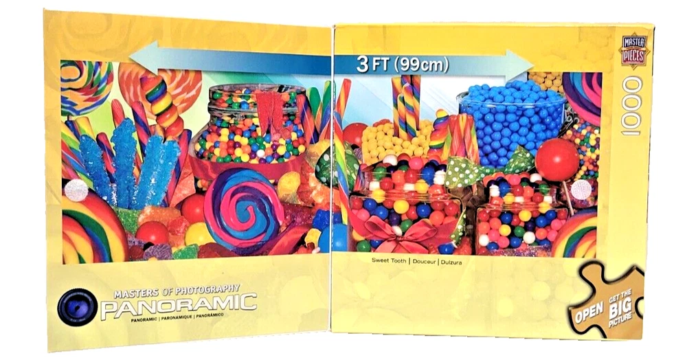 Indulge in sugary sweetness with this MasterPieces Panoramic "Sweet Tooth" jigsaw puzzle. Featuring 1000 colorful pieces, this puzzle is perfect for anyone with a sweet tooth and a love for puzzles. The Candy-themed puzzle is made of high-quality cardboard and is recommended for ages 12 and up. With a panoramic design measuring 39" x 13", this puzzle promises hours of fun and entertainment for both kids and adults. The puzzle is crafted in China and comes from a smoke-free household. Whether you're a puzzle enthusiast or just looking for a fun way to pass the time, this MasterPieces jigsaw puzzle is the perfect choice. Doing puzzles has some hidden benefits . Excellent qualities : Cultivate concentration, patience, and temper your will Movement development : Train hand-eye coordination and precise small movements Spatial intelligence : Improve visual discrimination of colors and shapes Critical thinking ability : Understand the relationship between parts and the whole, and draw inferences from one example to explore the future Relaxes your mind : Relieve work pressure and release yourself Brain development : Enhance memory and may help prevent or slow brain degeneration * We did not work the puzzle or count the pieces, but we verify the number count at your request. Each item we ship is carefully packaged to prevent any damage and is shipped immediately with tracking.