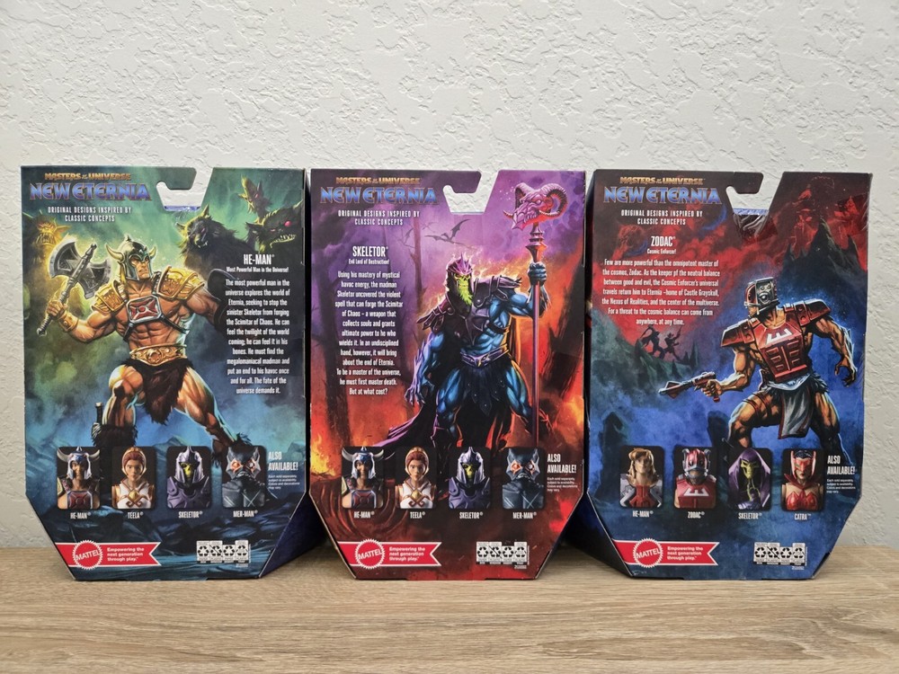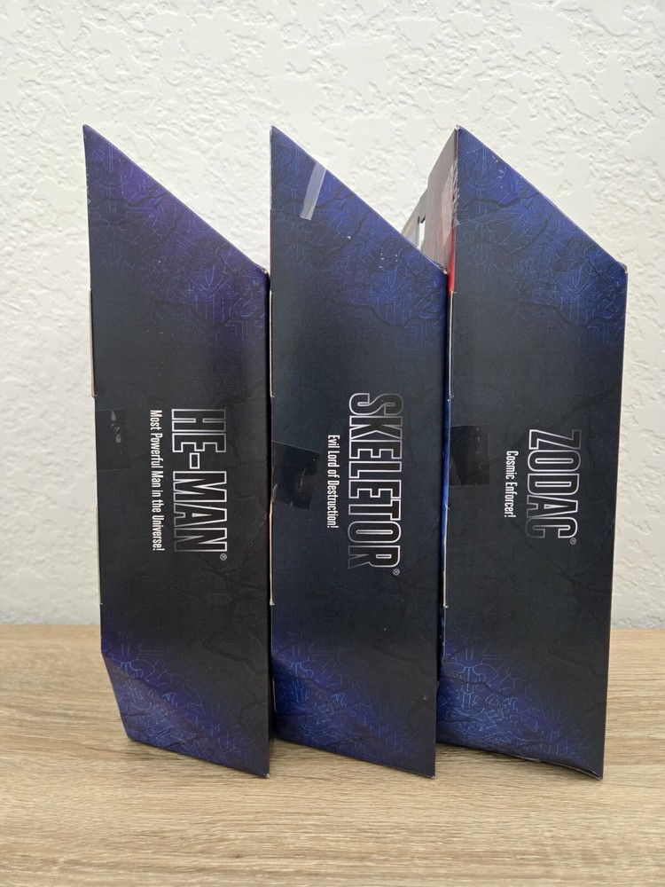 *Free shipping with USPS Ground Advantage. Ships ASAP! Smoke-free home. Items will be bubblewrapped with care and shipped in a cardboard box to protectthem.* Introducing the Master of the Universe - Masterverse action figure set featuring He-Man, Skeletor, and Zodiac. This set includes three figures and accessories, all packaged in the original box. The figures stand at 7 inches tall and are made of high-quality plastic material. With adjustable features and a cartoon and TV character theme, this set is perfect for fans of the Masters of the Universe franchise. Suitable for ages 6 years and up, this action figure set is a must-have for any collector or fan. Get your hands on this New Eternia series figure set and relive the epic battles from the TV show.