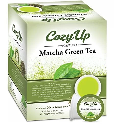 CozyUp Matcha Green Tea Pods for Keurig K-Cup Brewers, 36-Count Contains 36 single serving Pods for Keurig K-Cup Brewers Use with any Keurig brewers (Keurig 2.0) With natural green tea leaves and Japanese matcha Delivers smooth green tea with matcha aroma and milky taste
