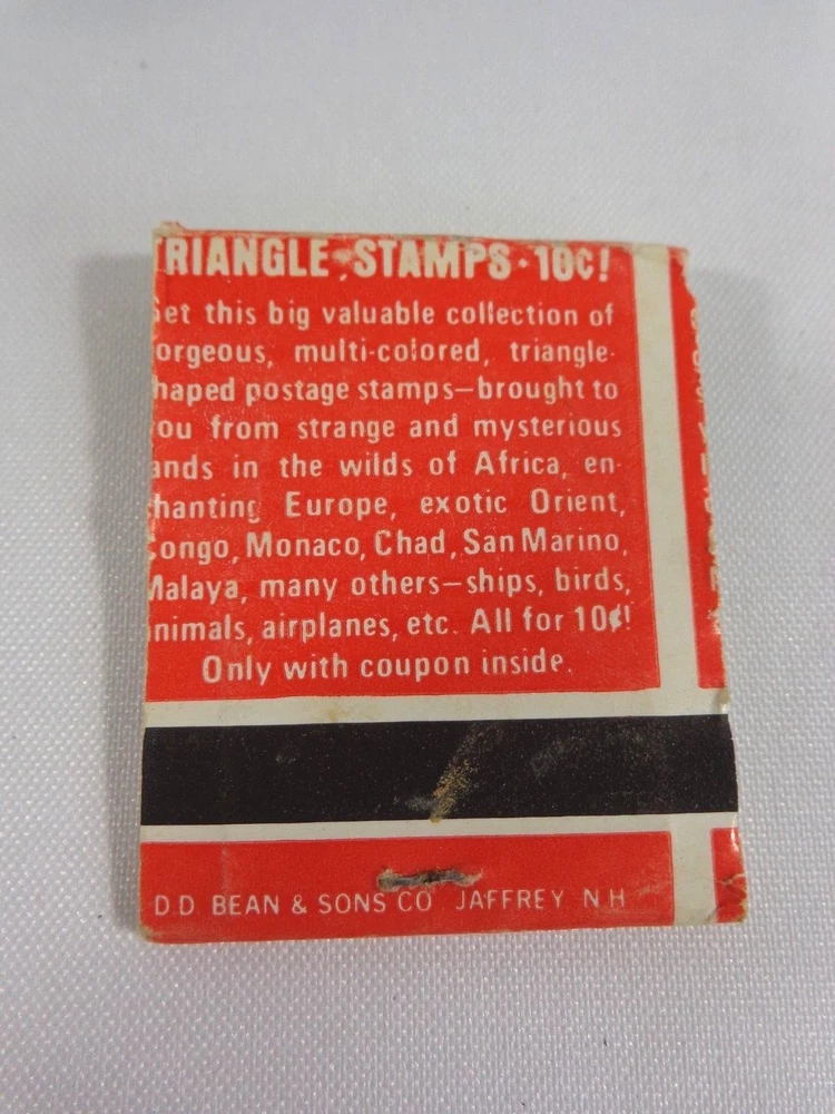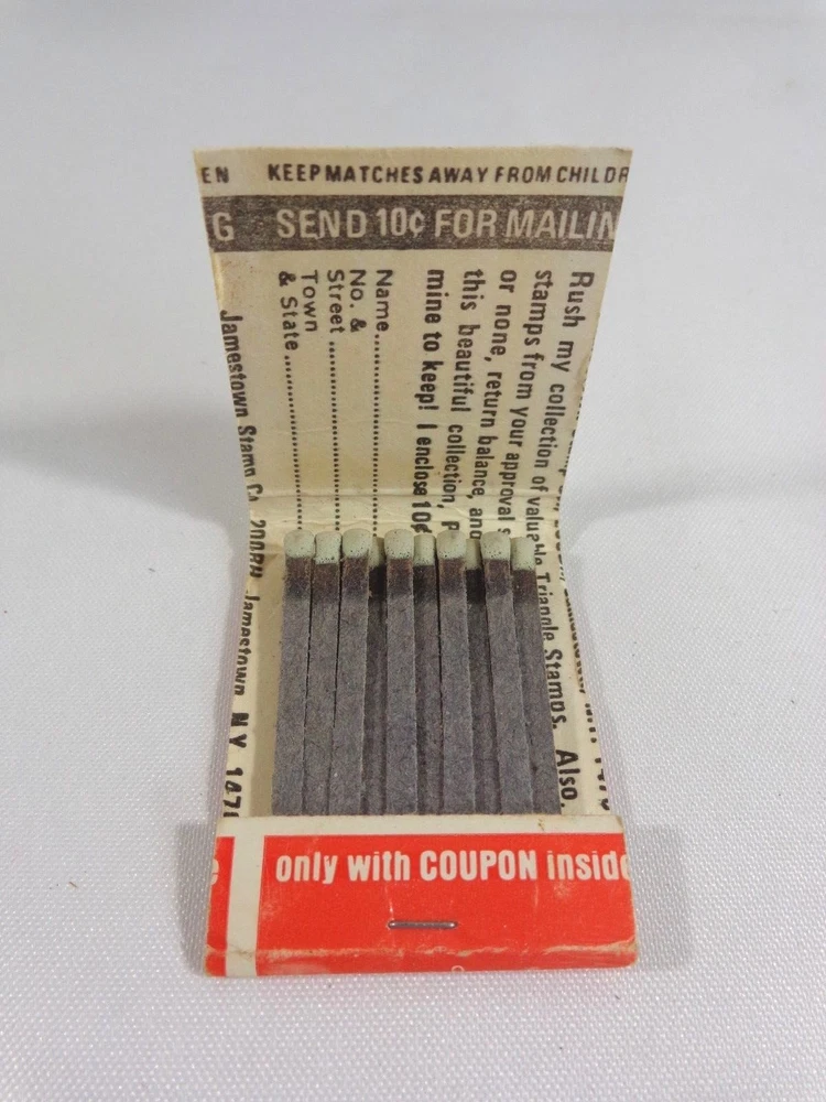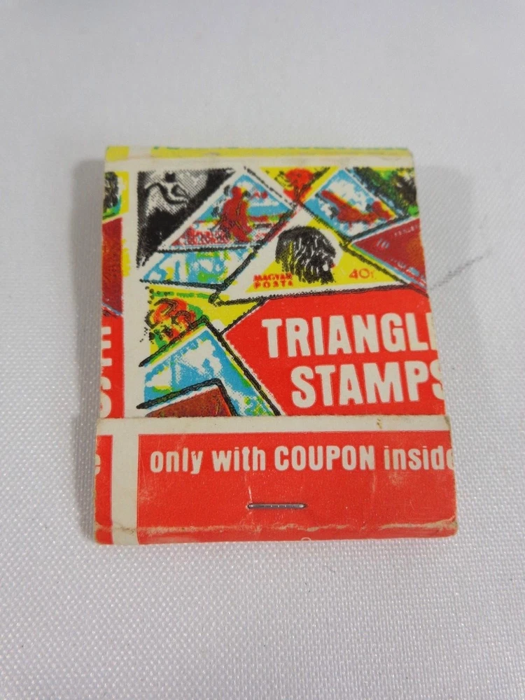 MATCHBOOK COVER * Triangle Stamps * Coupon Inside * Red, Yellow, Blue Condition: Full - no missing matches . Light wear - see photos. Fly in and visit us at Sassy Duck Finds.