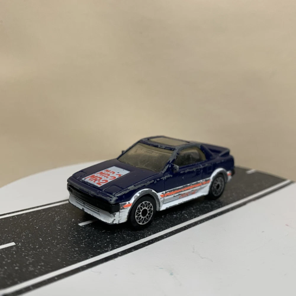 HomeMatchbox 1986-1990 Toyota MR2 MR-2 Mid Engined Coupe Dark Blue/White 1:56 As-is