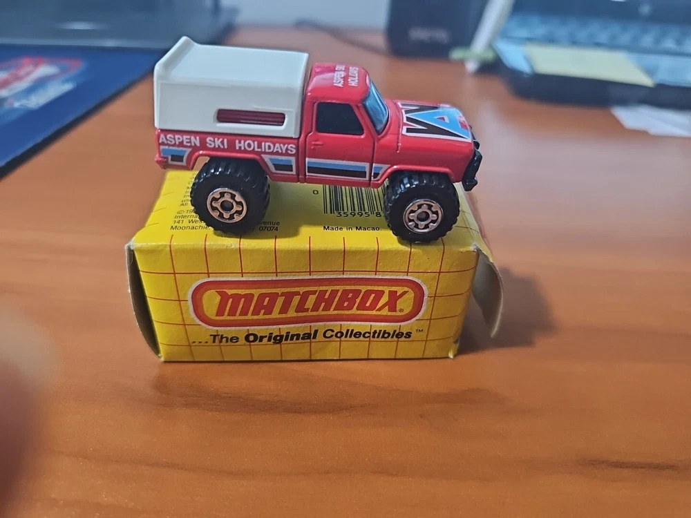 Matchbox #22 Mini Camper/Mini Pickup. Aspen Ski Holidays Theme. With Box.