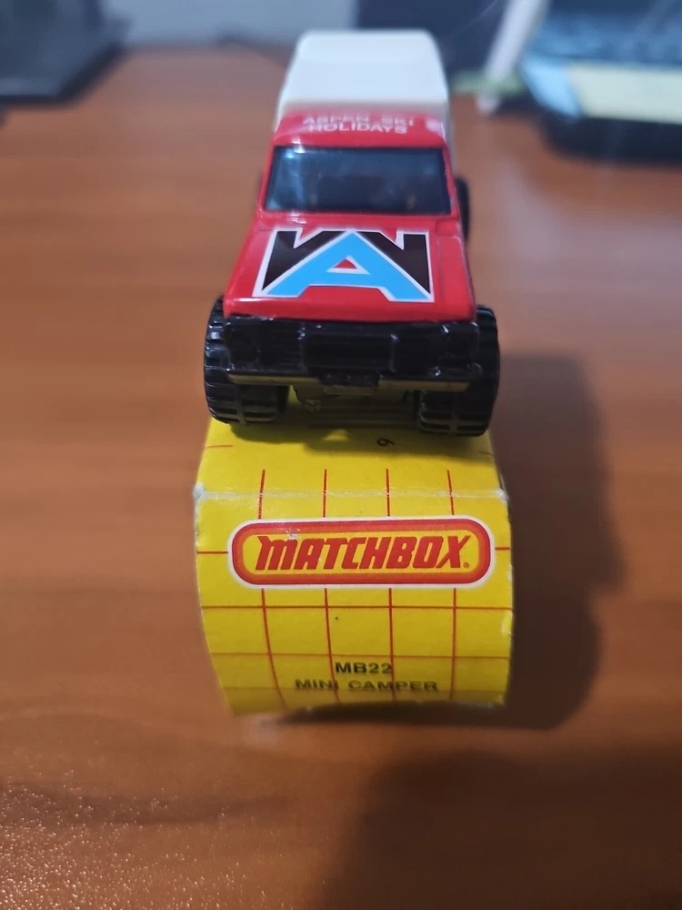 Matchbox #22 Mini Camper. Red, Aspen Ski Holidays Version. With Box.