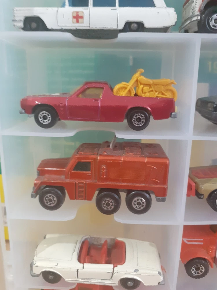 This Matchbox job lot includes 24 cars of various makes and years, from the 70s, 80s, and 2000s. The vehicles are a mix of old and new, featuring models such as Holden and Mercedes. The cars are made of plastic and metal and are multi-coloured, with a scale of 1:64. The brand is Matchbox and the series is Matchbox Superfast. The cars are perfect for collectors or for children who love to play with toy cars.